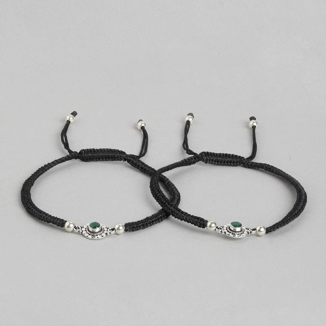 Floral Rhodium Plated Green CZ 925 Sterling Silver Thread Anklet