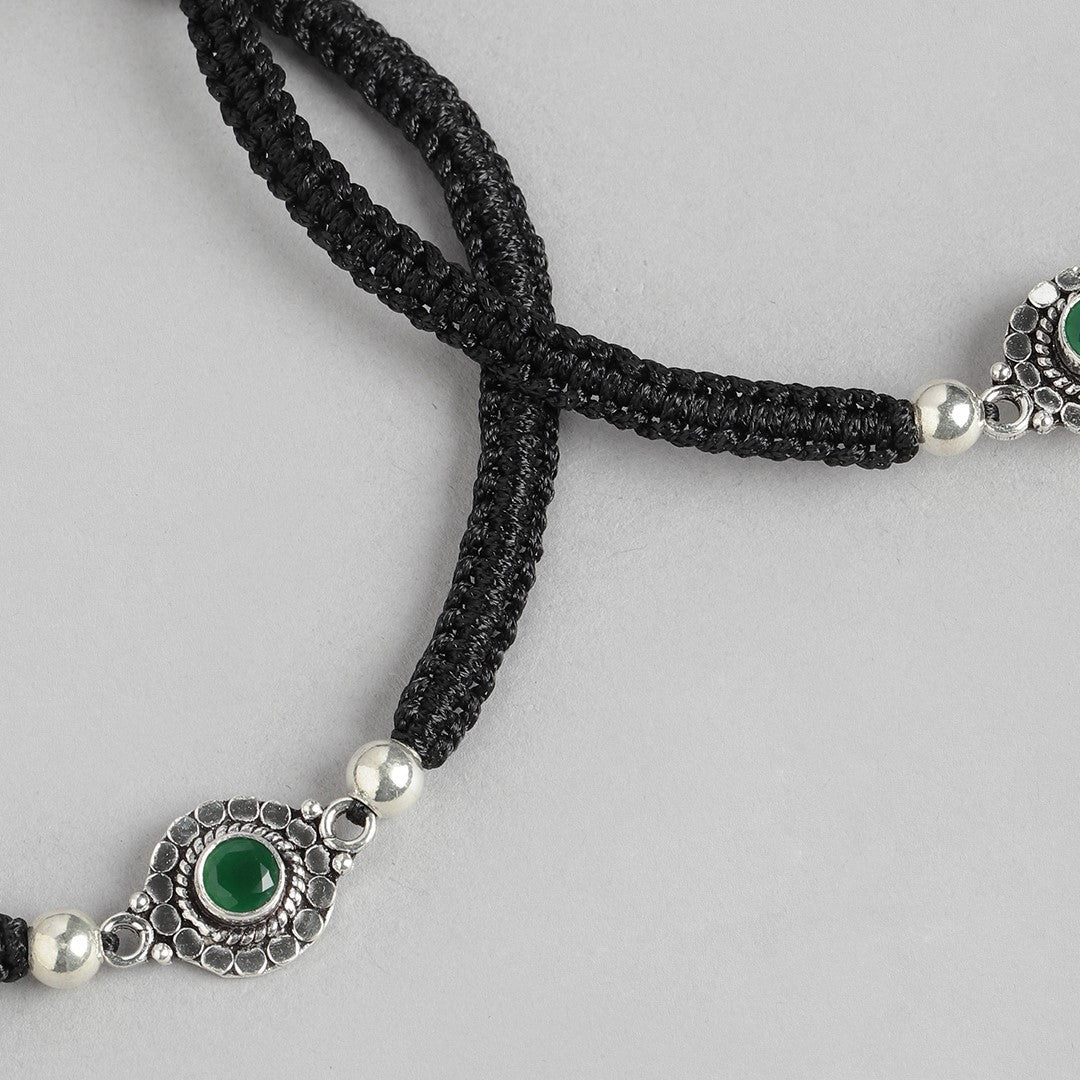 Product Description:- Enhance your accessory collection with this Floral Rhodium Plated Green CZ 925 Sterling Silver Thread Anklet. It is crafted with precision and features a beautiful floral design with intricate detailing. The rhodium plating ensures durability and adds an elegant shine to the anklet. The Green CZ stones are placed perfectly, providing a stunning contrast to the overall design. The thread anklet is adjustable to ensure a comfortable fit, and its lightweight construction makes it easy to wear all day long. Perfect for any occasion, this anklet will add a touch of glamour to any outfit.