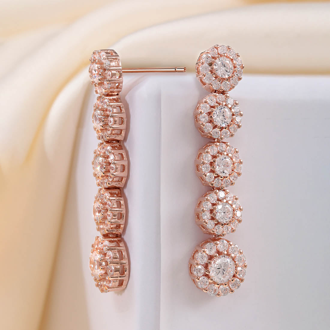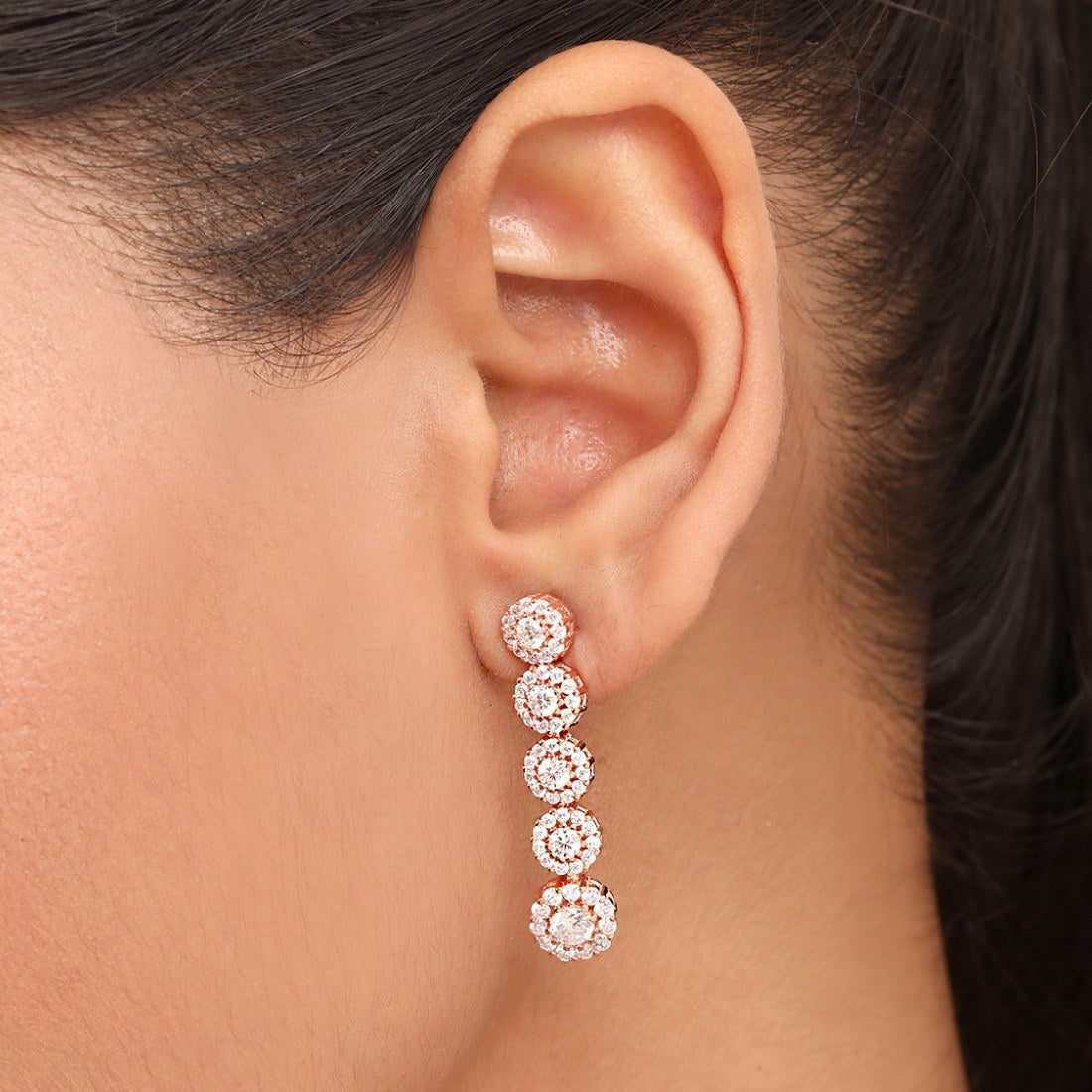 Product Description:- Crafted from 925 sterling silver and plated in exquisite rose gold, these earrings feature a graceful, fluid design that adds a touch of sophistication to any look. Ideal for both everyday wear and special occasions, they offer a blend of style and charm.