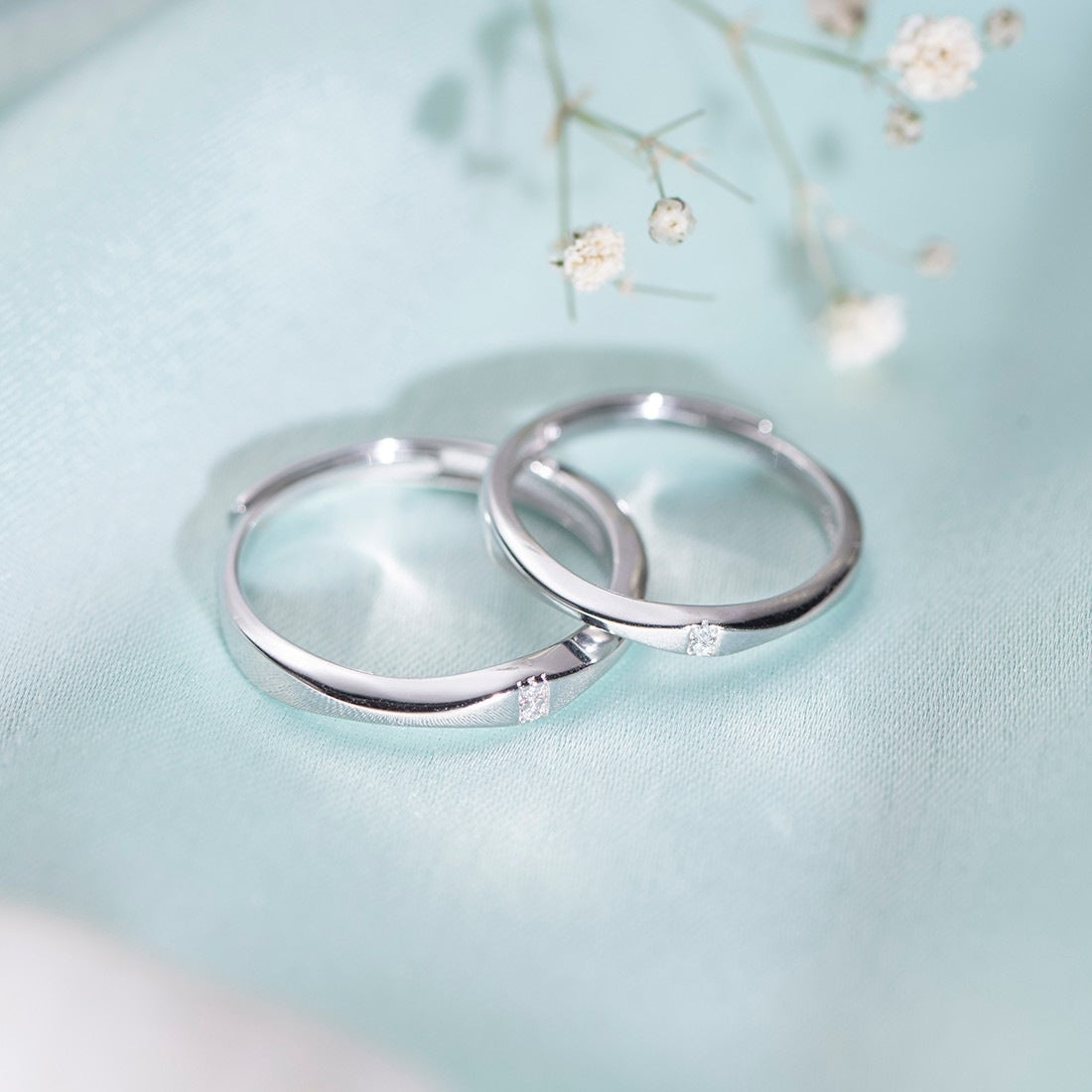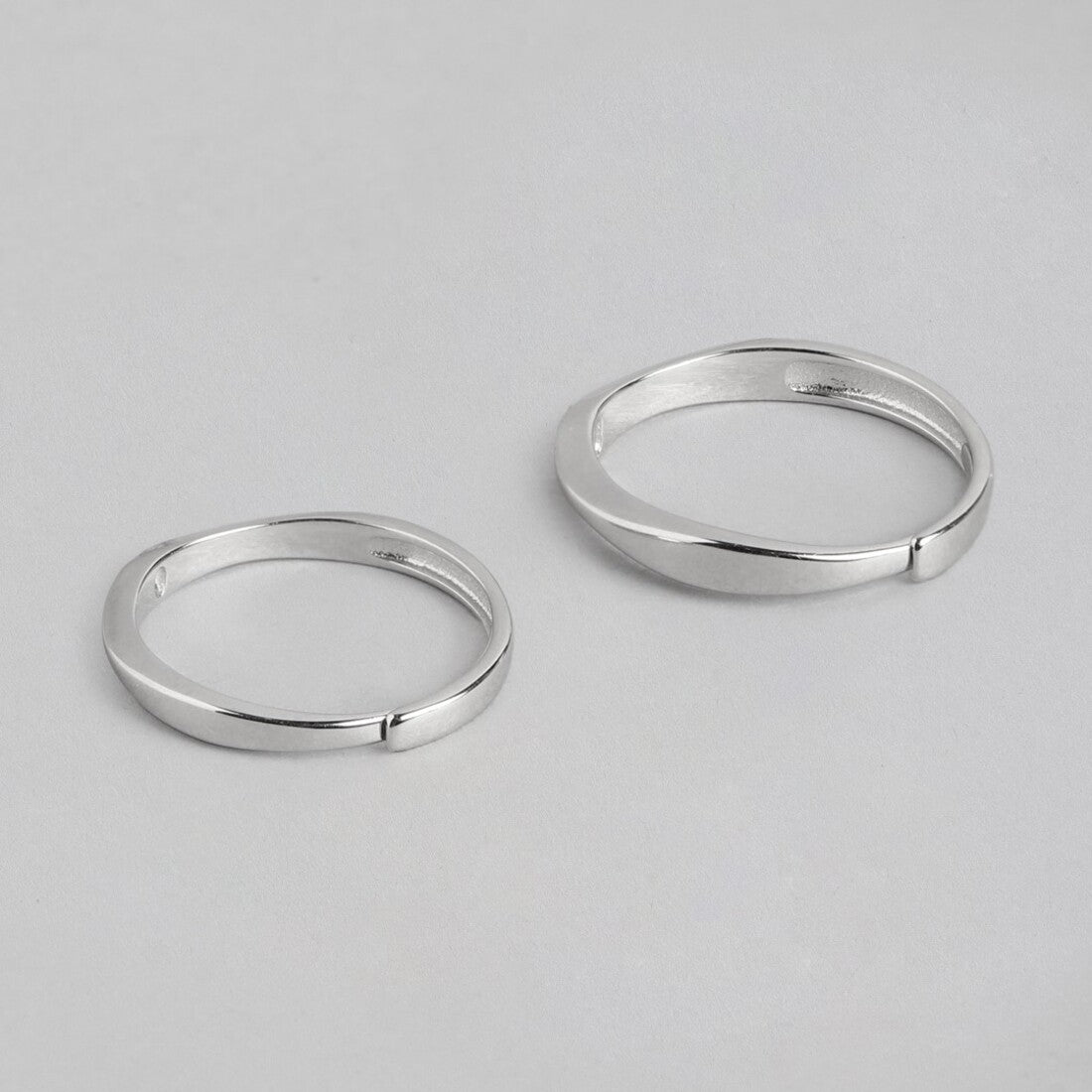 Forever Bonded Rhodium-Plated 925 Sterling Silver Couple Ring (Adjustable)