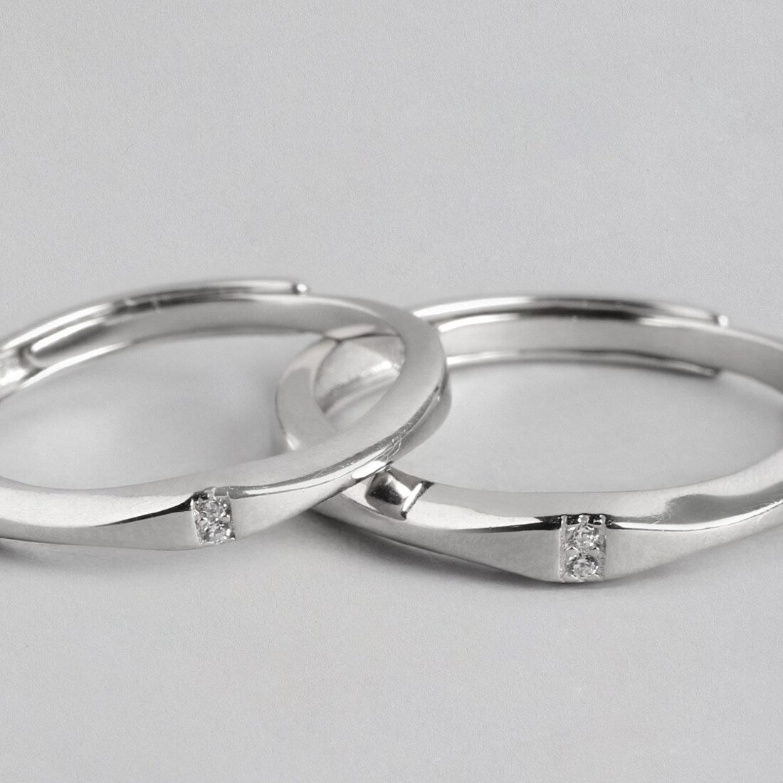 Product Description:- Celebrate your eternal love with the "Forever Bonded" Rhodium-Plated Sterling Silver Couple Ring. Crafted with utmost precision and attention to detail, this exquisite ring symbolizes the unbreakable bond between two souls. Made from high-quality sterling silver and plated with lustrous rhodium, the ring showcases a timeless design with a touch of elegance.