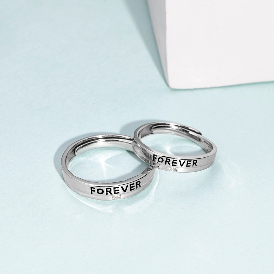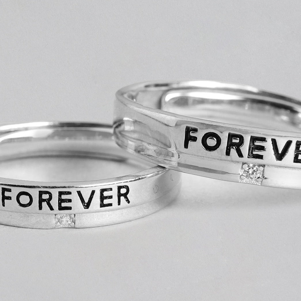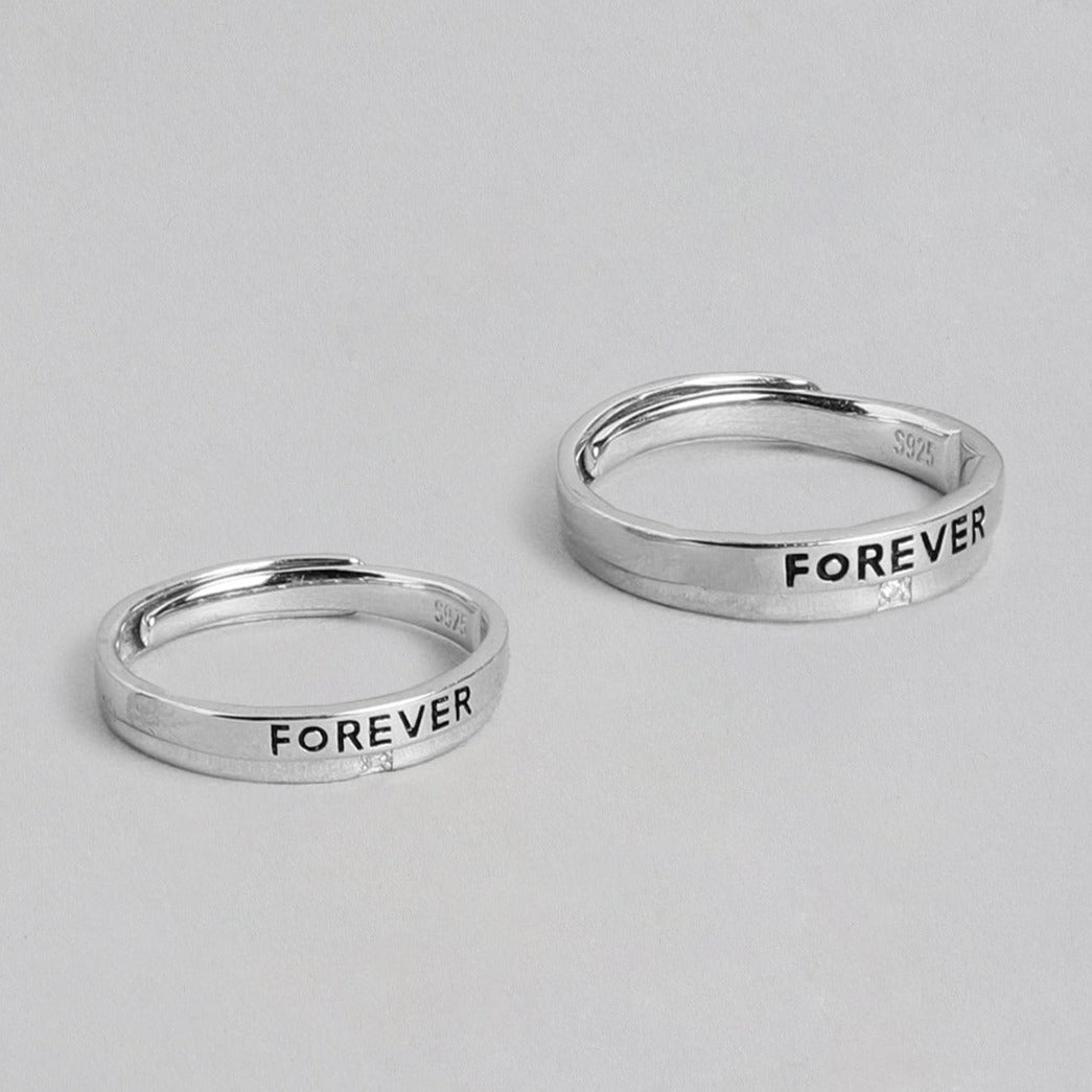 Forever Together 925 Sterling Silver Couple Ring Band (Adjustable)