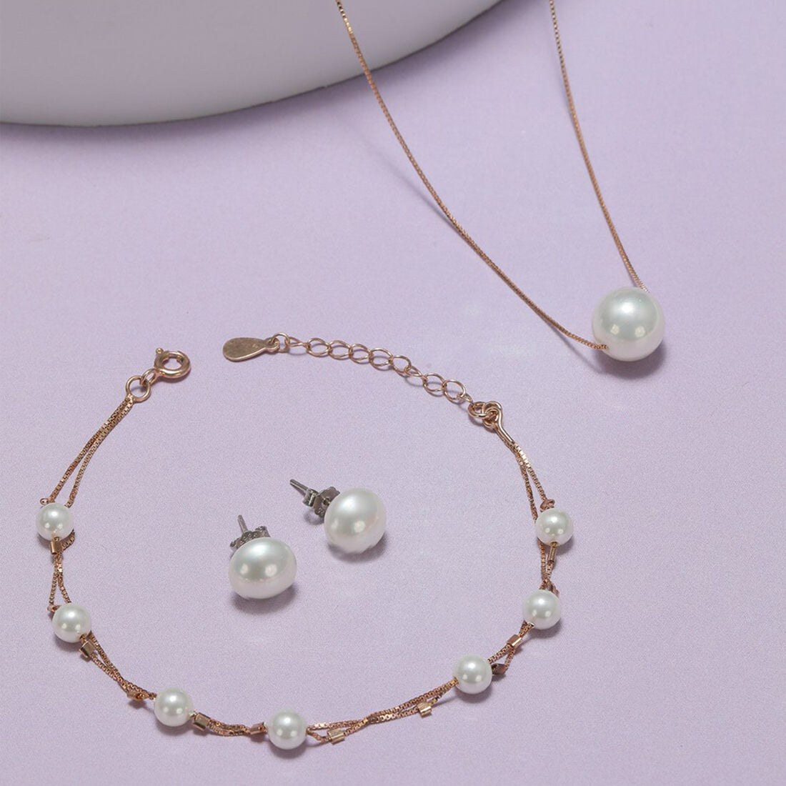 Freshwater Pearl 925 Silver Jewellery Set Trio with Rose Gold Chain