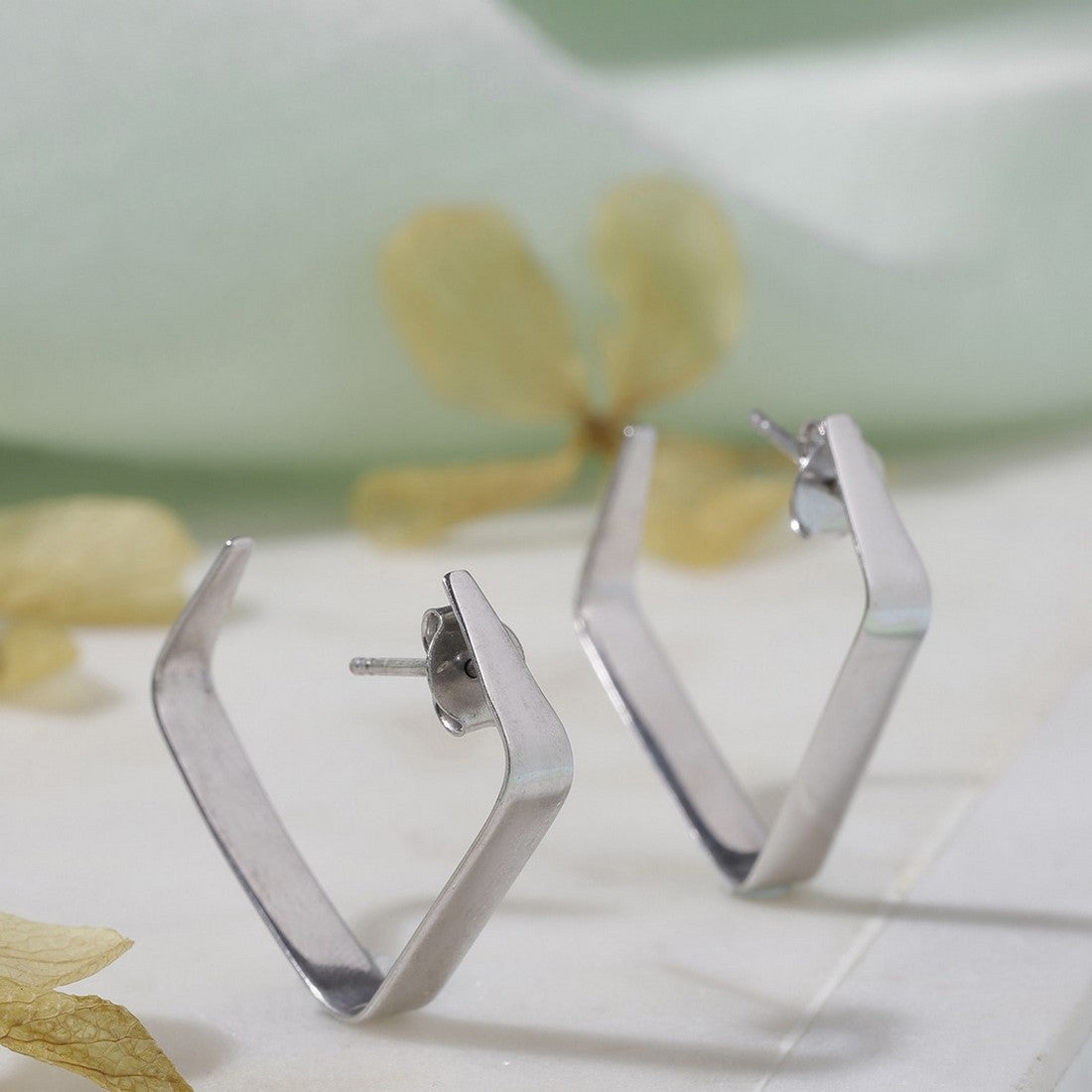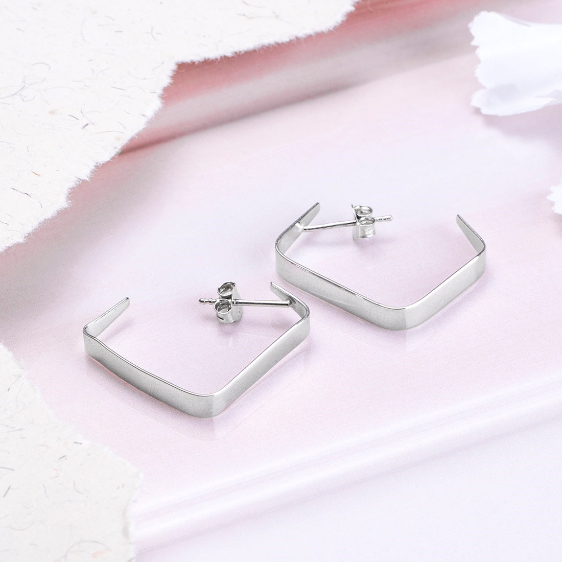 Geometrical Rhodium Plated 925 Sterling Silver Hoops