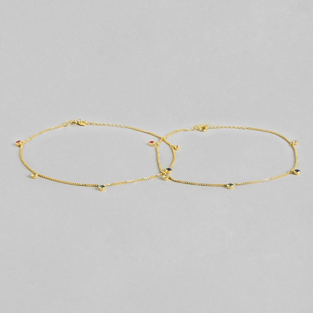 Product Description:- Add elegance to your outfit with the Gilded Harmony Drop Anklet from ZAVYA. Handcrafted with luxurious gold plating and high-quality cubic zirconia stones, this anklet is perfect for all occasions. Its 925 sterling silver ensures quality and suitability for sensitive skin. Comes with an authentication certificate. A perfect gift for your girlfriend, mother, or any special woman in your life.