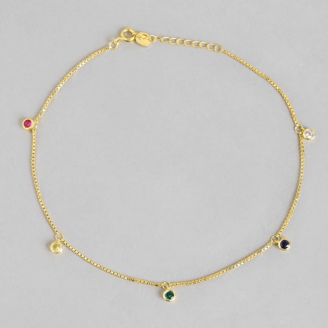 Gilded Harmony Gold Plating Colour Stone 925 Sterling Silver Drop Anklet