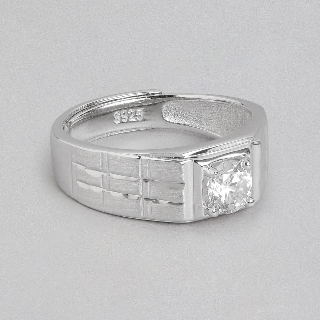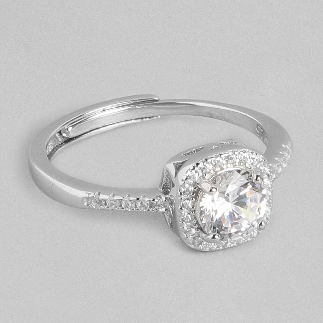 Glimmering Promise Rhodium-Plated 925 Sterling Silver Couple Ring (Adjustable)