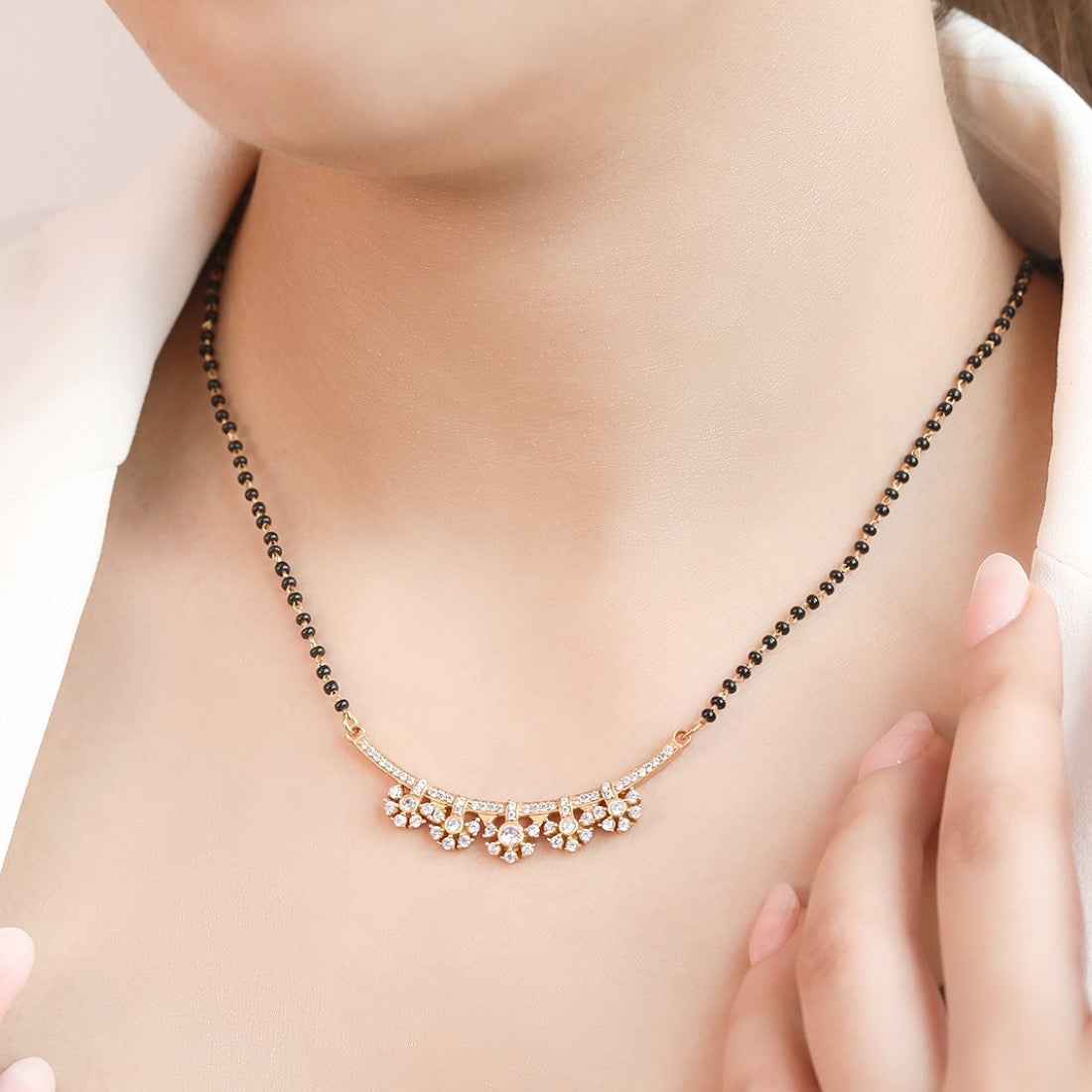 Product Description:- Embrace the eternal bond of love with our Gold Plated Flower 925 Sterling Silver Mangalsutra Valentine Hamper! 🌸✨ This exquisite mangalsutra, adorned with delicate flowers and gold plating, symbolizes the beauty of commitment. Elevate your style and celebrate love with this timeless piece in our exclusive Valentine's Day hamper. 💖
