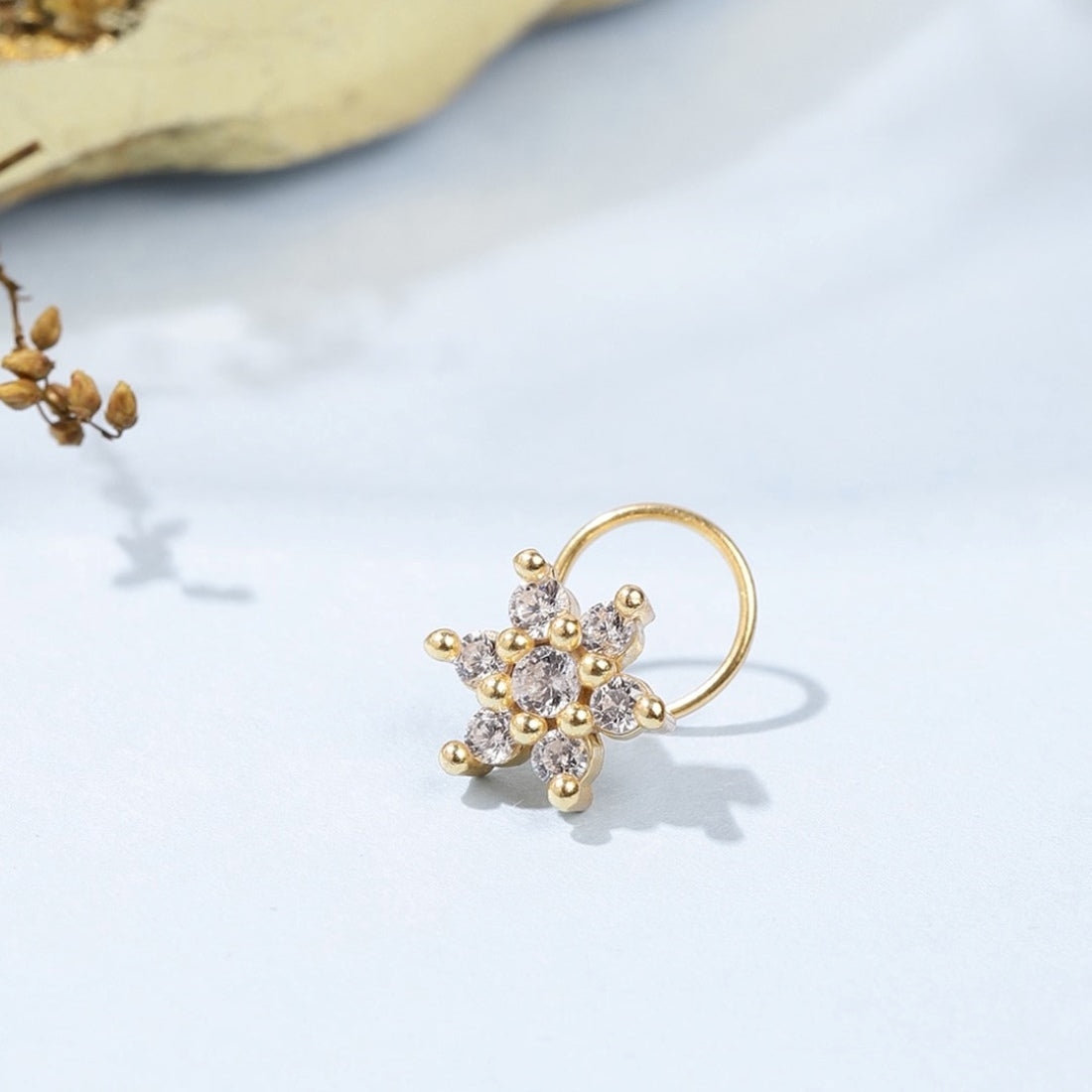 Golden Blossom CZ 925 Sterling Silver Flower Nosepin