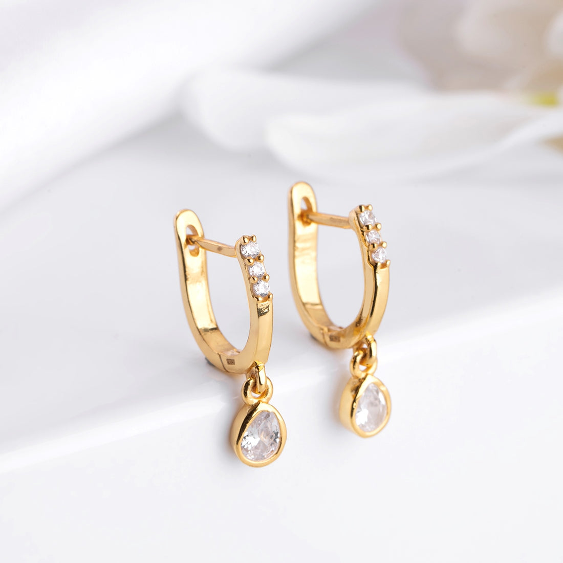 Golden Cascade 925 Sterling Silver Gold-Plated Drop CZ Earrings