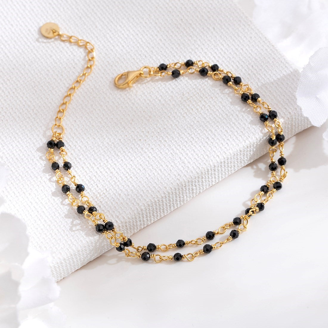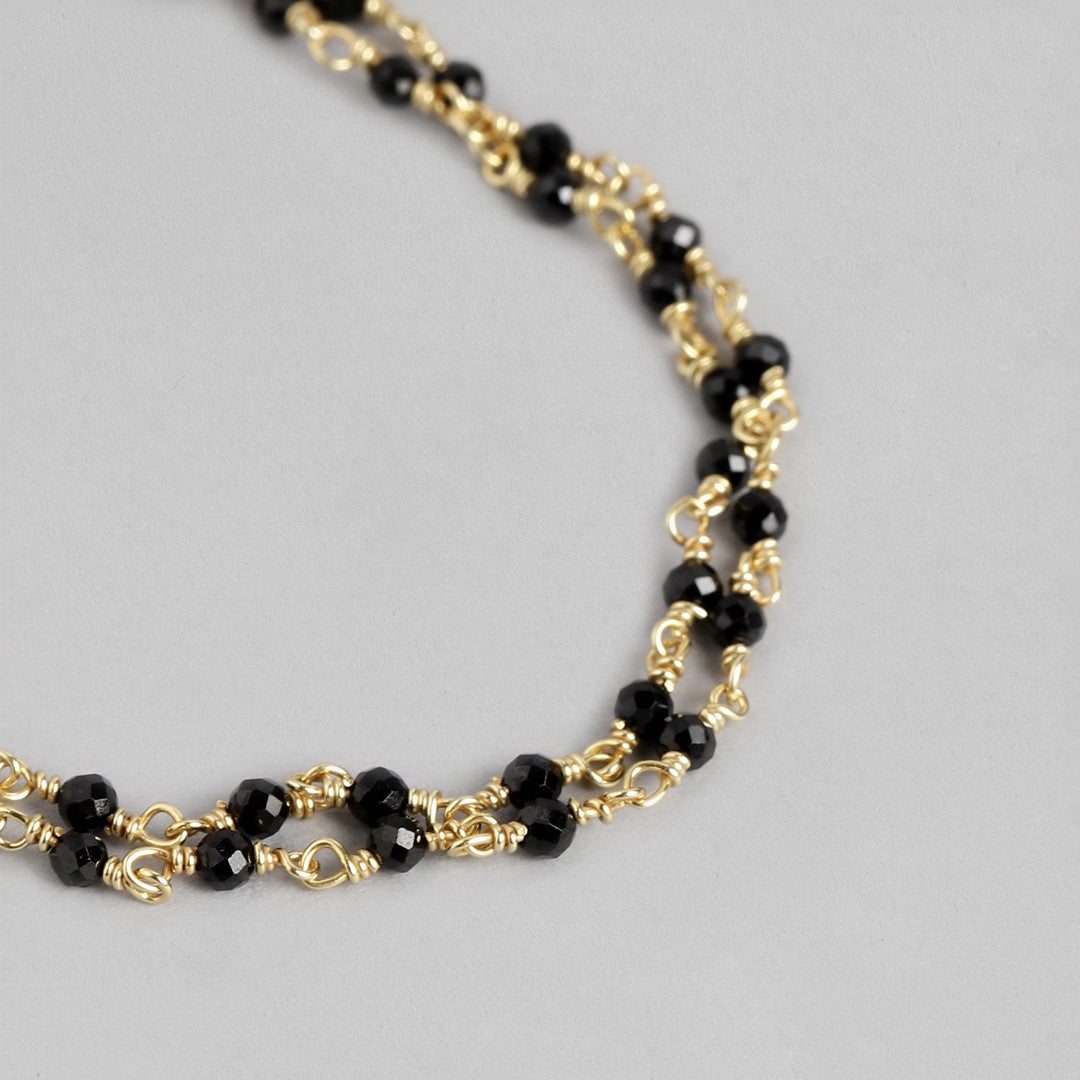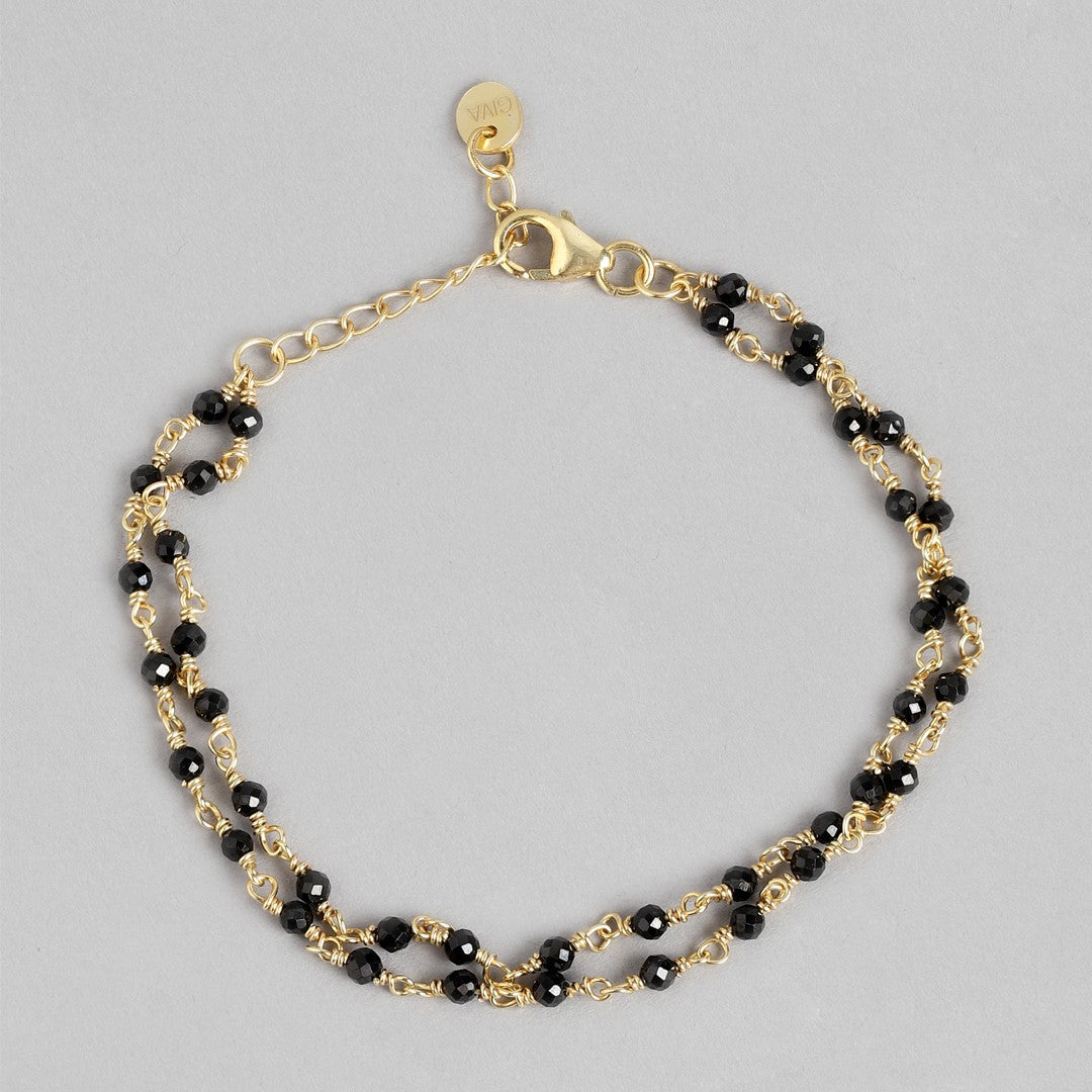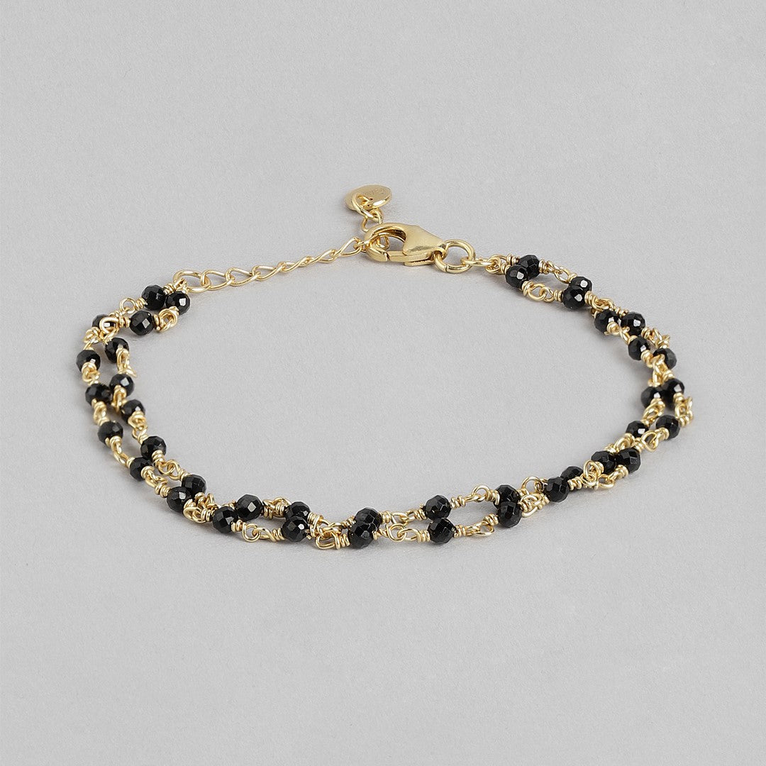 Golden Linkage Gold-Plated 925 Sterling Silver Bracelet with Beaded Chain