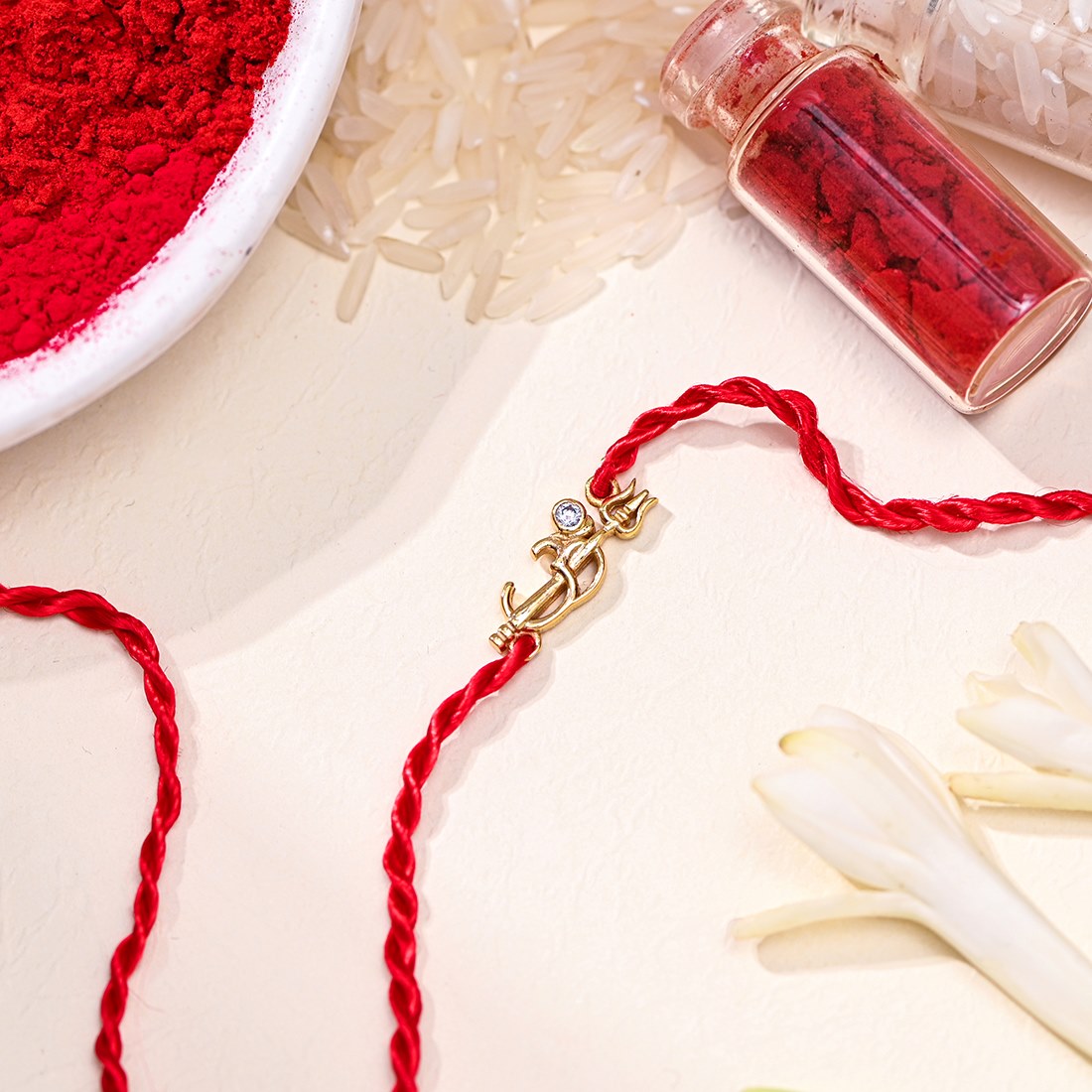 Product Description:- Celebrate the sacred bond of love and protection with our Golden Bond Rakhi. Crafted with care, this exquisite Rakhi features a gold-plated 925 sterling silver design. The intricate details and shimmering finish make it a symbol of elegance and tradition. Adorned with a sacred thread, it beautifully showcases the enduring bond between siblings. Delight your brother or loved one with this special Rakhi, a token of love and blessings that will be cherished forever.