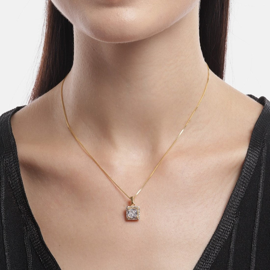 Product Description:- Elevate your elegance with 'Golden Radiance,' a radiant fusion of gold-plated 925 sterling silver and cubic zirconia. This adjustable necklace embodies timeless allure, its lustrous design reflecting sophistication and warmth. Wear it at your desired length to complement any outfit, adding a touch of opulence and brilliance to your look. Shine brightly with this versatile piece that effortlessly transitions from day to night, a true symbol of exquisite style.