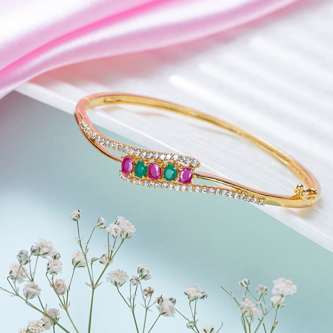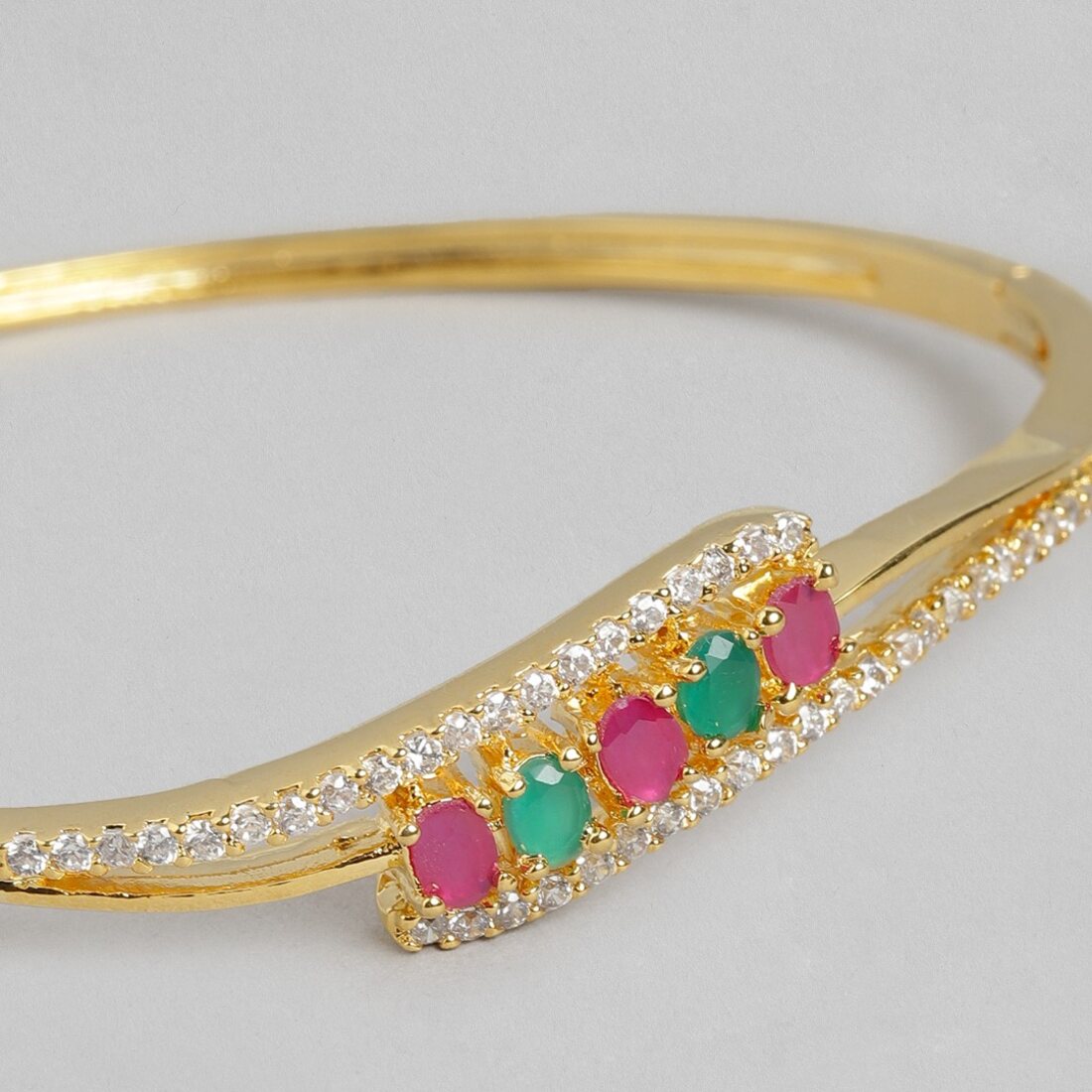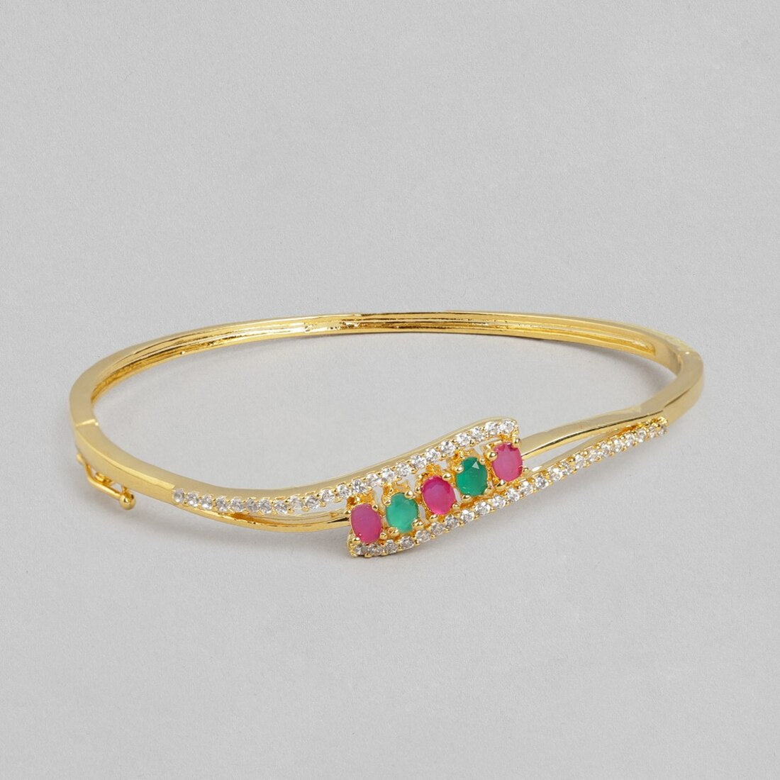 Product Description:- Experience the exquisite charm of Golden Splendor with this stunning Gold-Plated 925 Sterling Silver Bracelet. Crafted with meticulous attention to detail, this bracelet features vibrant colored cubic zirconia stones that add a touch of brilliance to your look. The combination of the radiant gold plating and the sparkling gemstones creates a captivating and luxurious appeal. With its adjustable design, it offers a comfortable fit for every wrist. Elevate your style and exude elegance with this Golden Splendor bracelet that is sure to turn heads and become a cherished piece in your jewelry collection.
