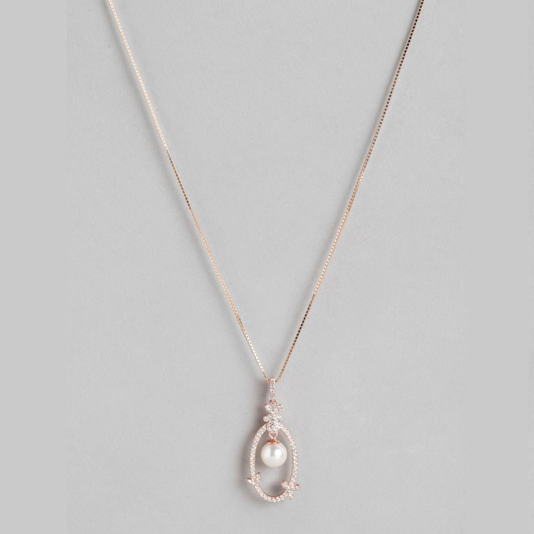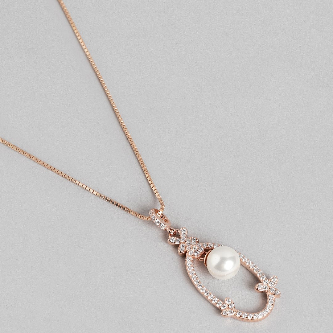 Graceful Allure Rose Gold Pearl & CZ 925 Sterling Silver Pendant with Chain