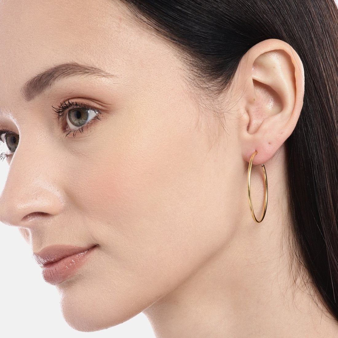 Product Description:- Elevate your style with 'Great Golden Hoops' – a dazzling fusion of 925 sterling silver and radiant gold plating. These hoops redefine elegance, effortlessly transitioning from day to night. Their substantial size and timeless design make a bold statement, reflecting light with every graceful sway. Embrace the allure of gold and silver, accentuating your confidence with these exquisite earrings.