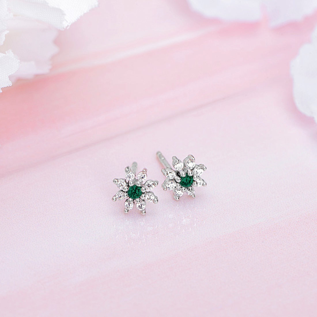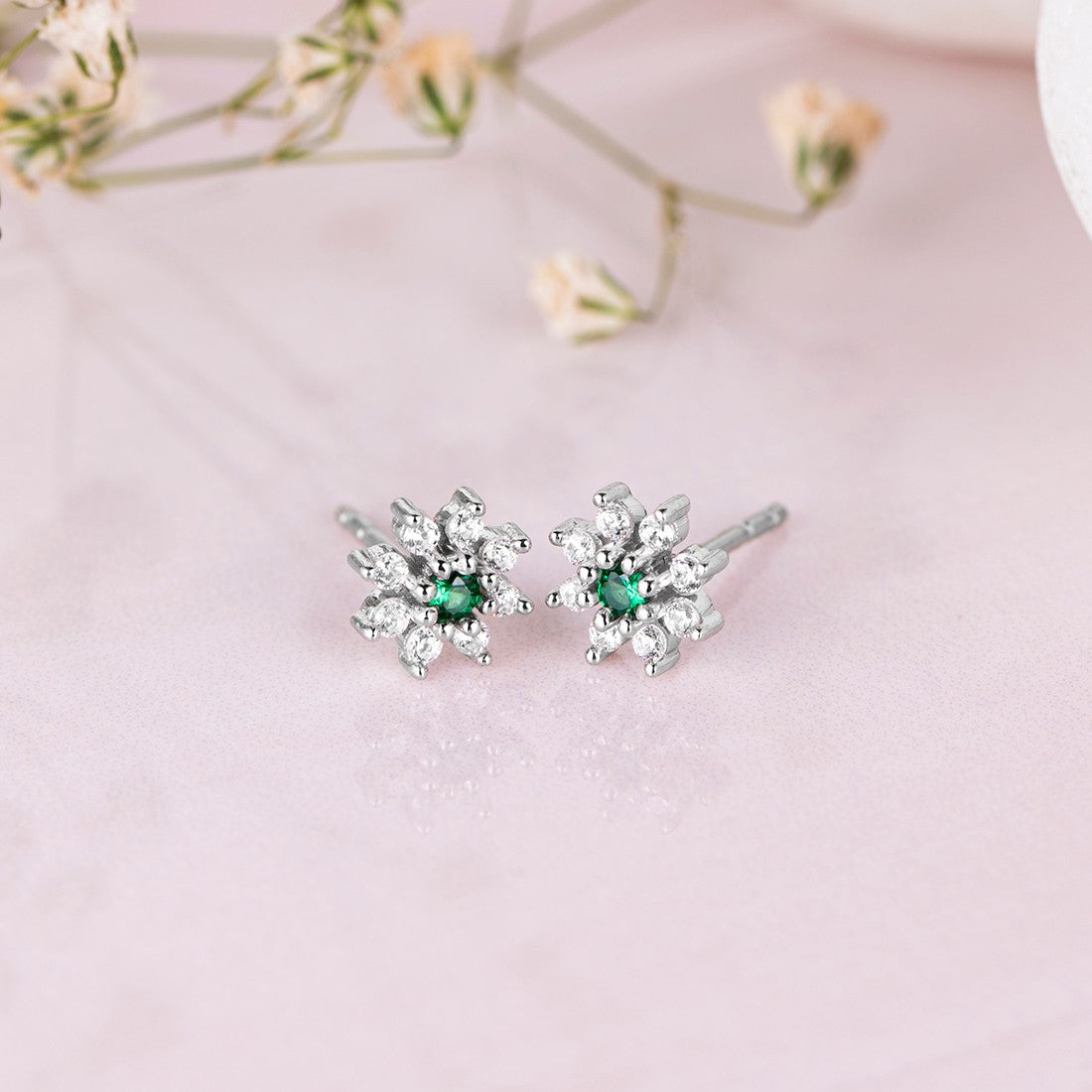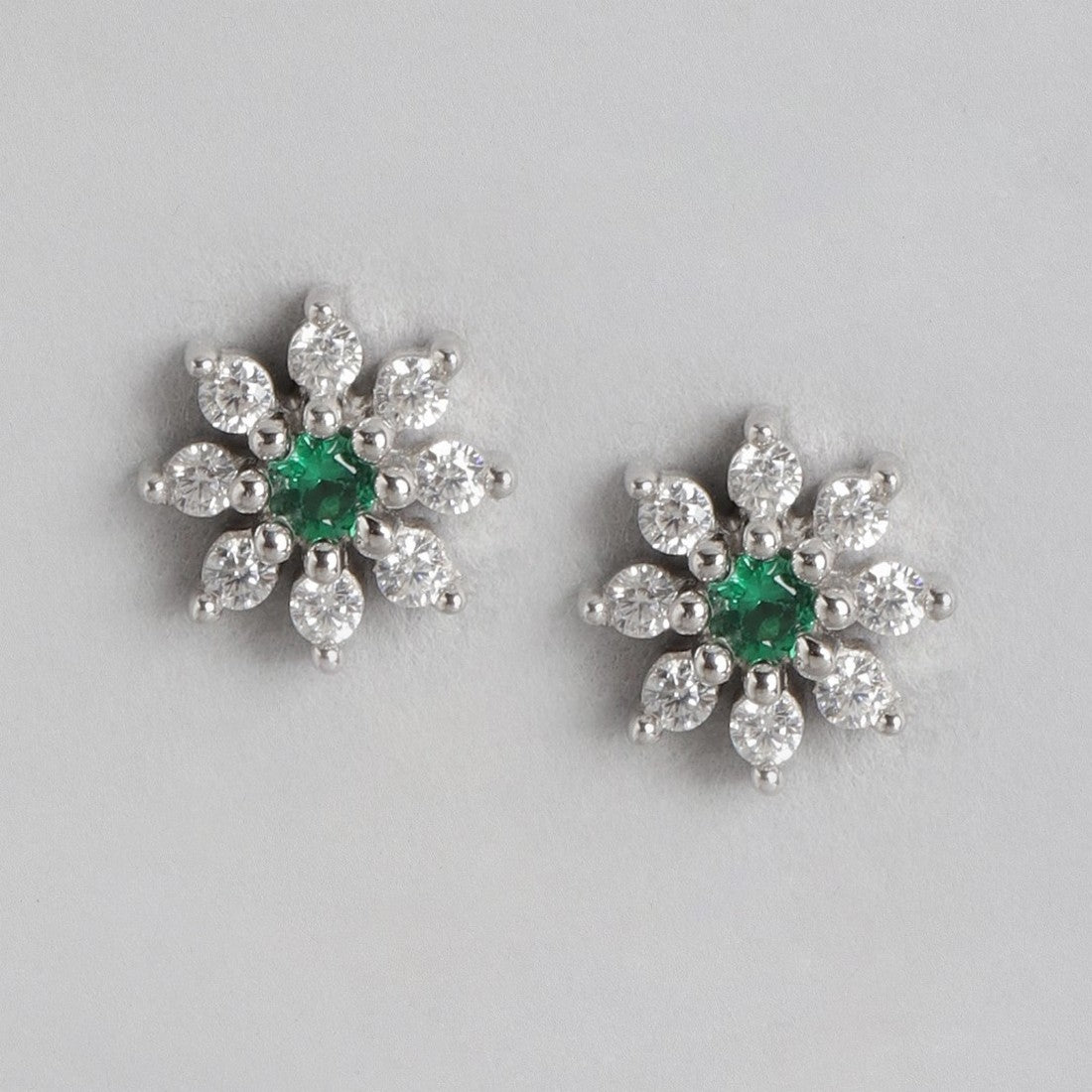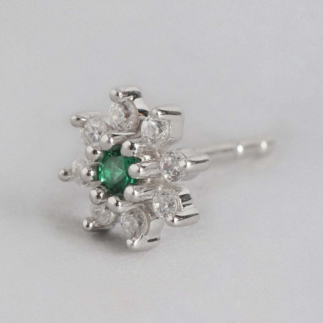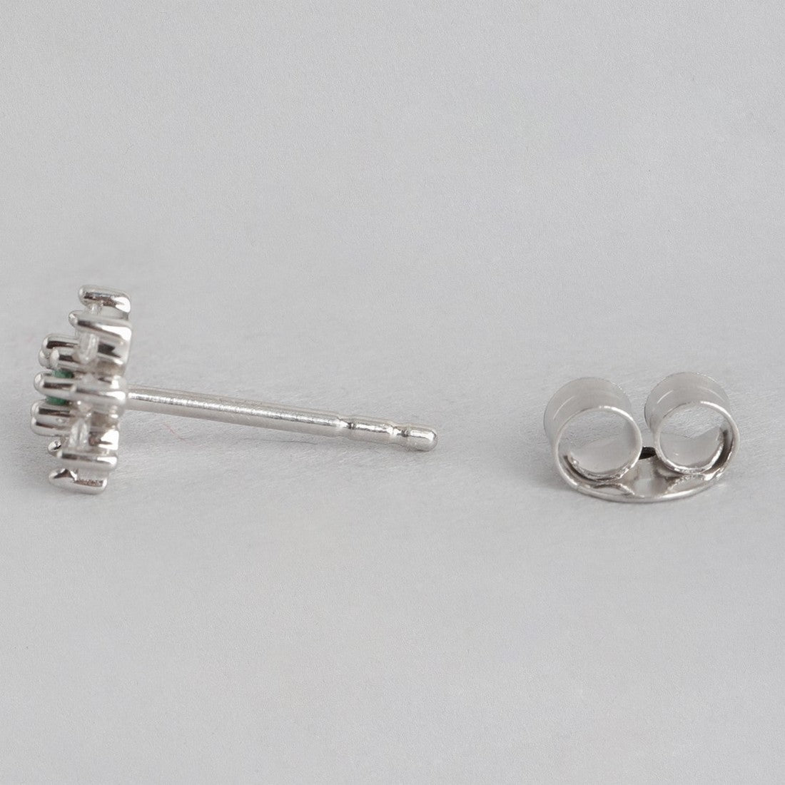 Green Stone CZ Star Rhodium Plated 925 Sterling Silver Studs