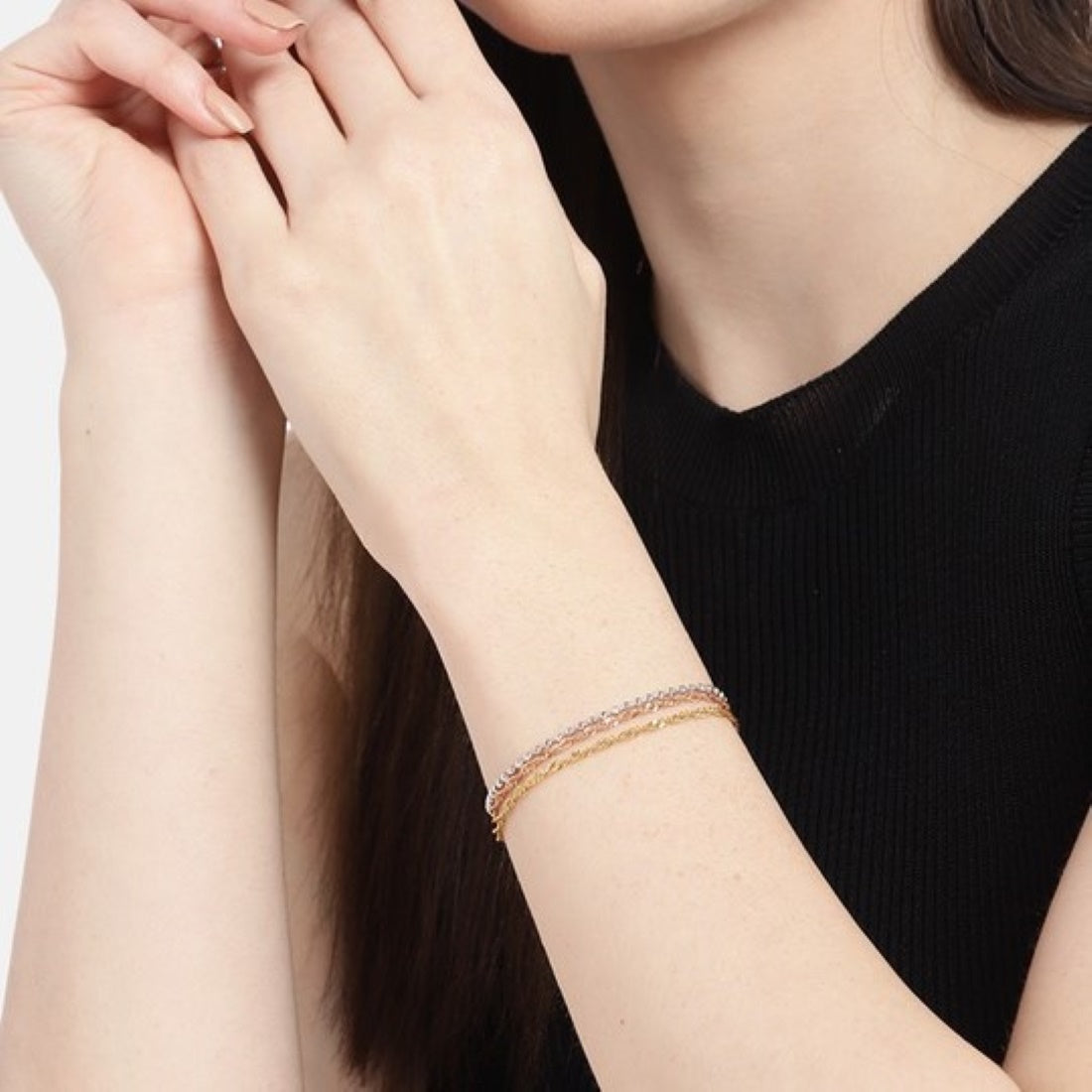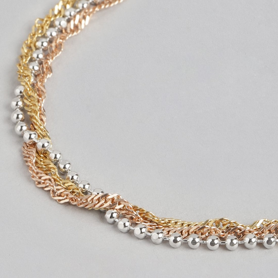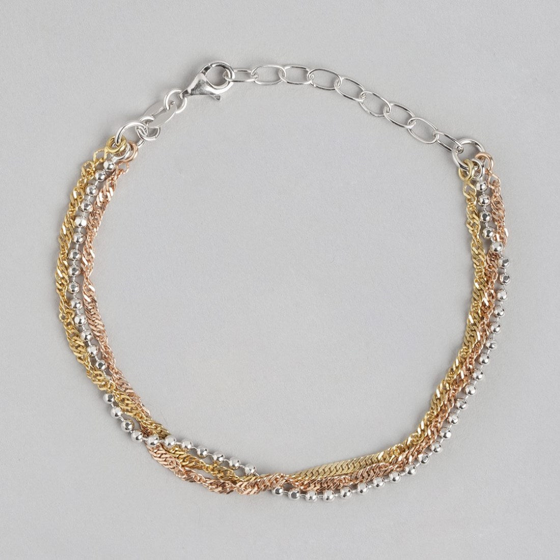 Product Description:- Experience the harmonious blend of tones with our 'Harmony in Triads' Triple Tone Plated 925 Sterling Silver Bracelet. Adorned with delicately crafted spherical beads, each link is a testament to the synergy of gold, silver, and rose gold tones. The triple-tone plating not only adds visual richness but also ensures enduring allure. This bracelet is more than an accessory; it's a symphony of style and elegance. Let your wrist be adorned with the exquisite craftsmanship of sterling silver, woven into a bracelet that resonates with trilateral opulence.