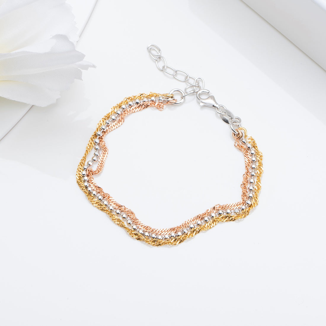 Harmony in Triads Triple Tone Plated 925 Sterling Silver Bracelet