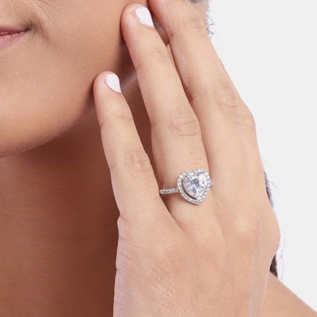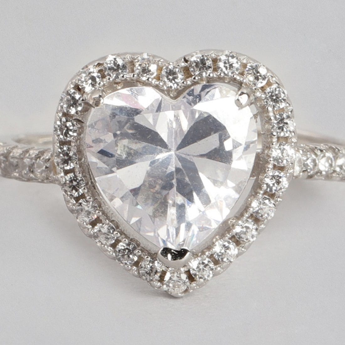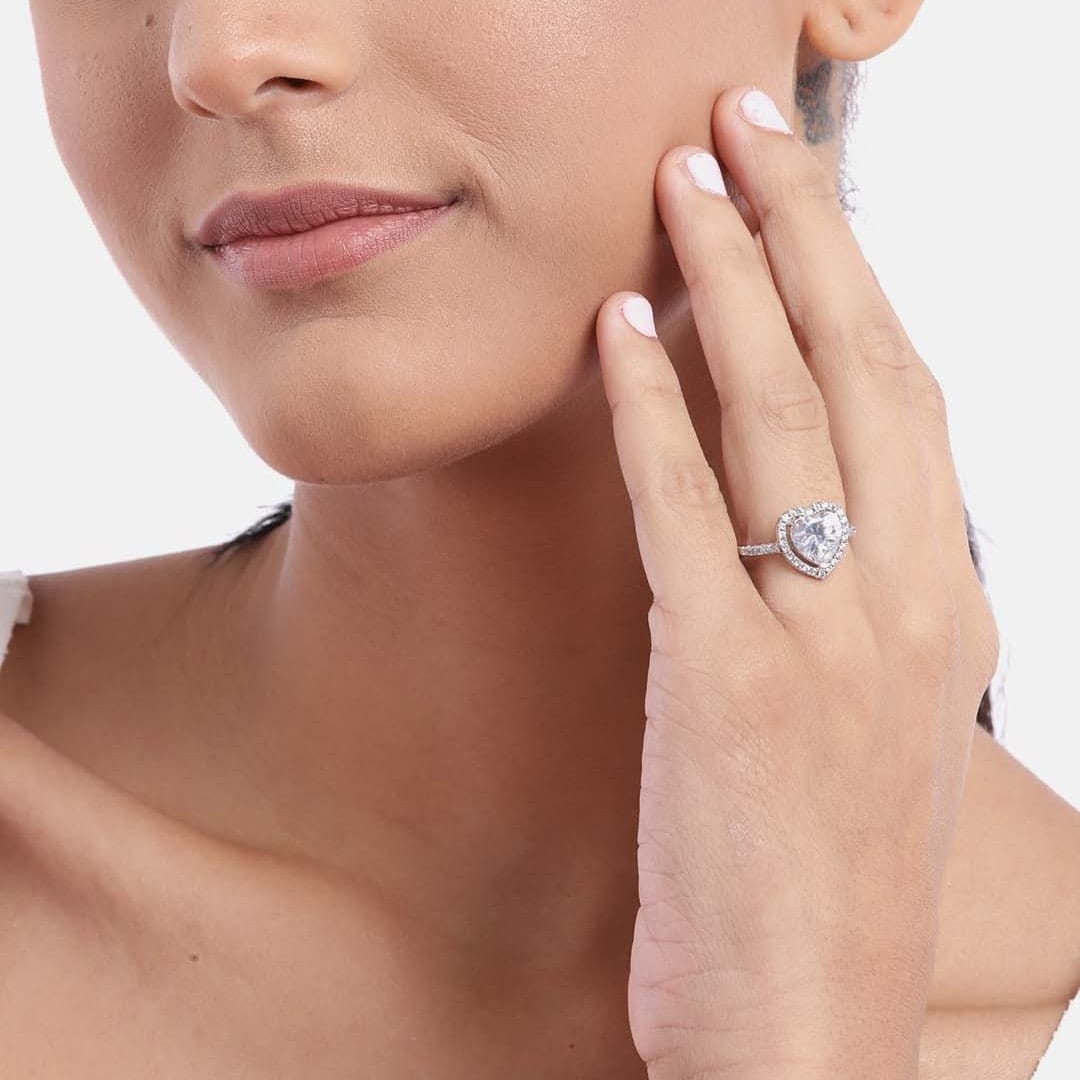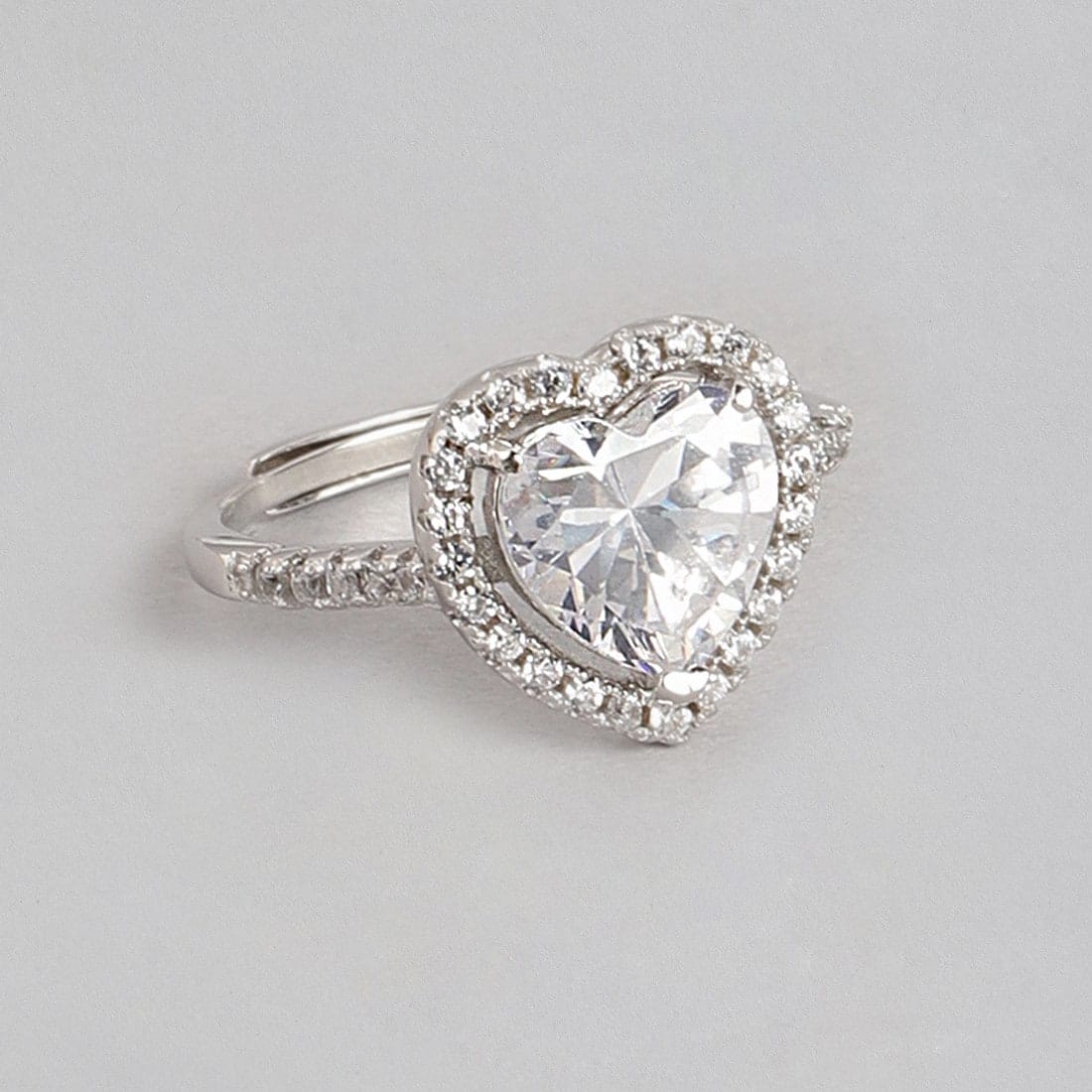 Heart Solitaire Studded 925 Sterling Ring (Adjustable)