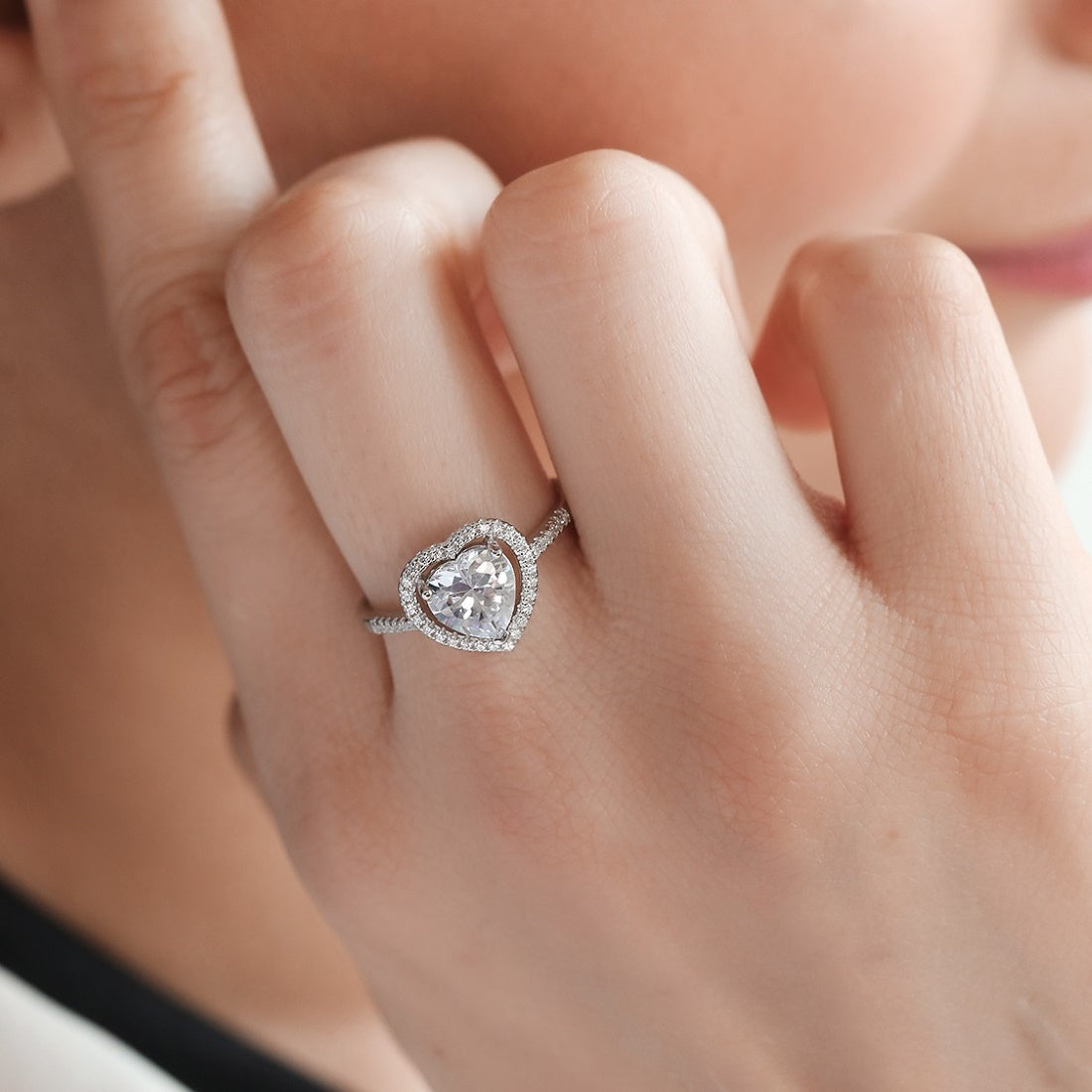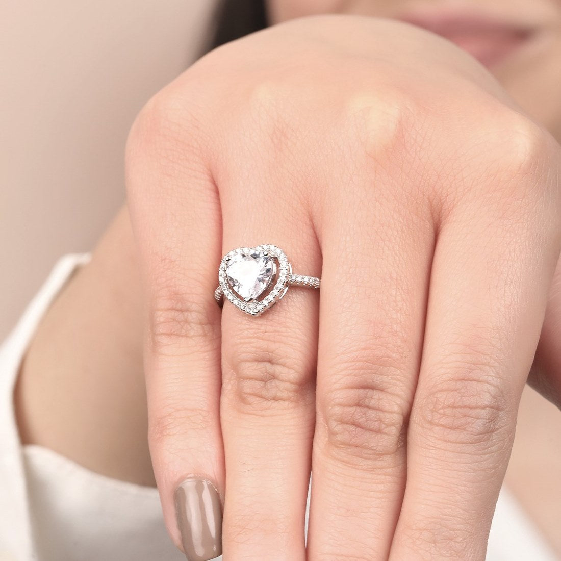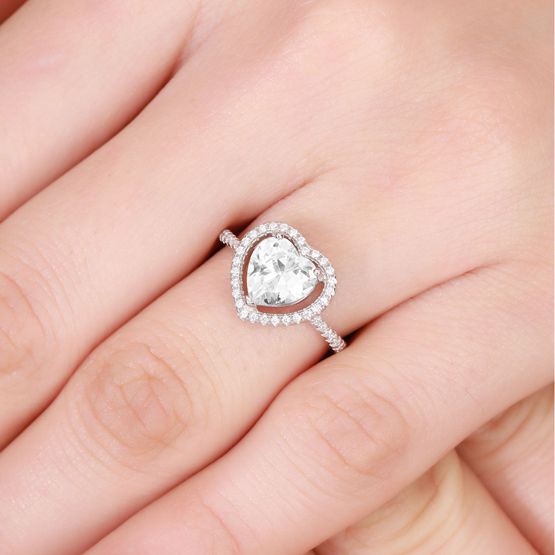 Heart Solitaire Studded 925 Sterling Ring (Adjustable)