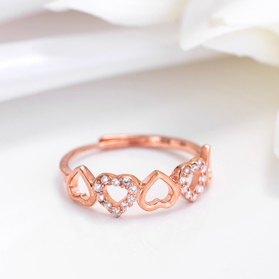 Heartfelt Charm Rose Gold Plated 925 Sterling Silver Women's Ring (Adjustable)