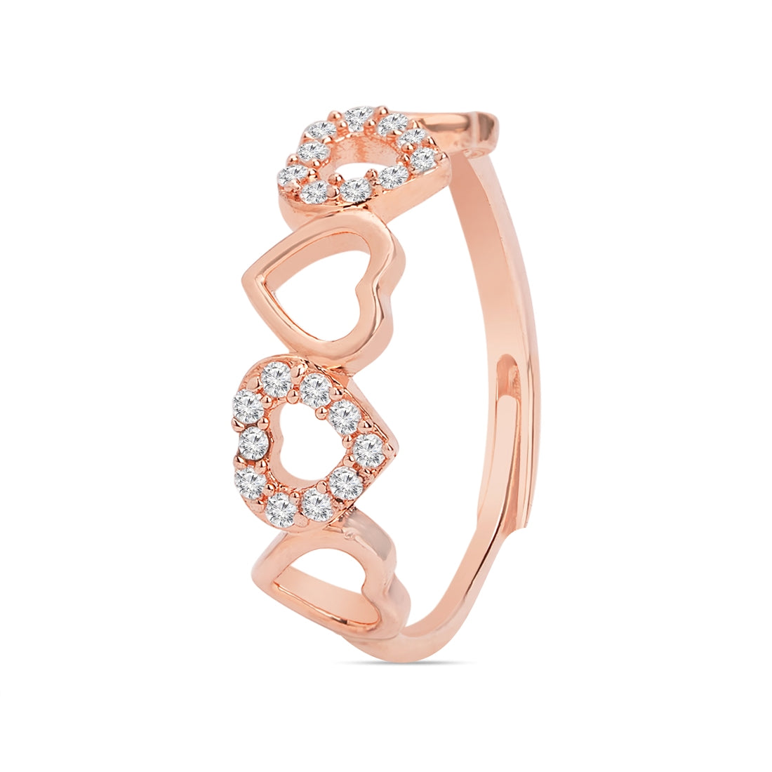 Product Description:- Add a touch of heartfelt charm to your look with our Heartfelt Charm rose gold plated 925 sterling silver women's ring. This enchanting ring features a delicate heart pattern adorned with sparkling cubic zirconia gemstones, radiating love and elegance. The rose gold plating enhances the warmth and beauty of the ring, making it a perfect accessory for any romantic occasion or special celebration. Make a statement of timeless love and sophistication with this versatile piece that complements your individual style effortlessly.