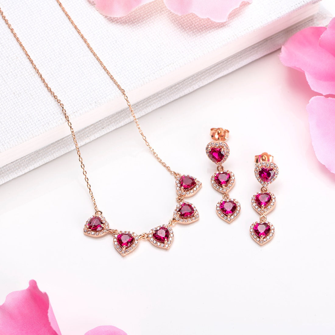 Heartfelt Elegance Rose Gold-Plated 925 Sterling Silver Jewelry Set