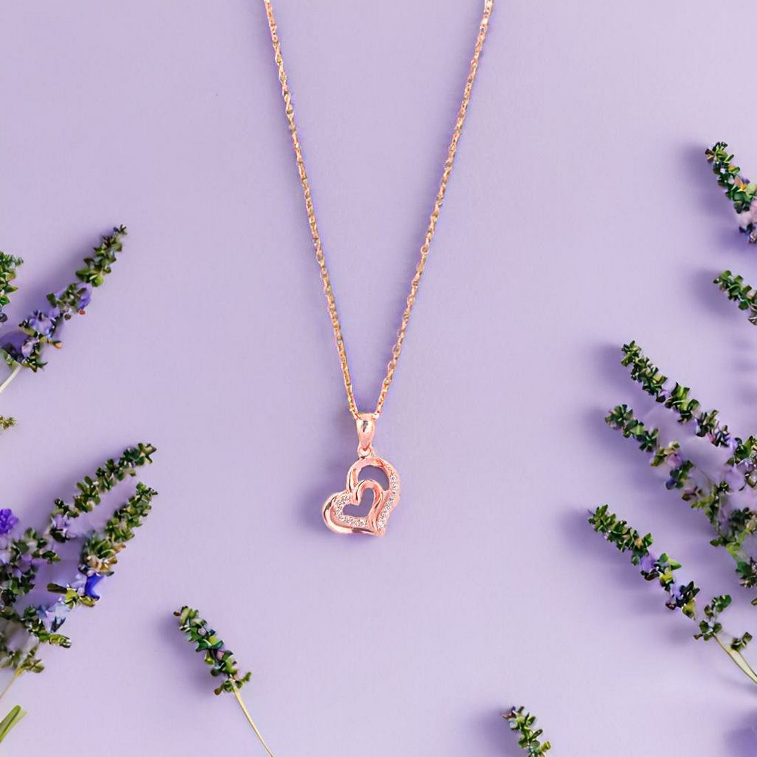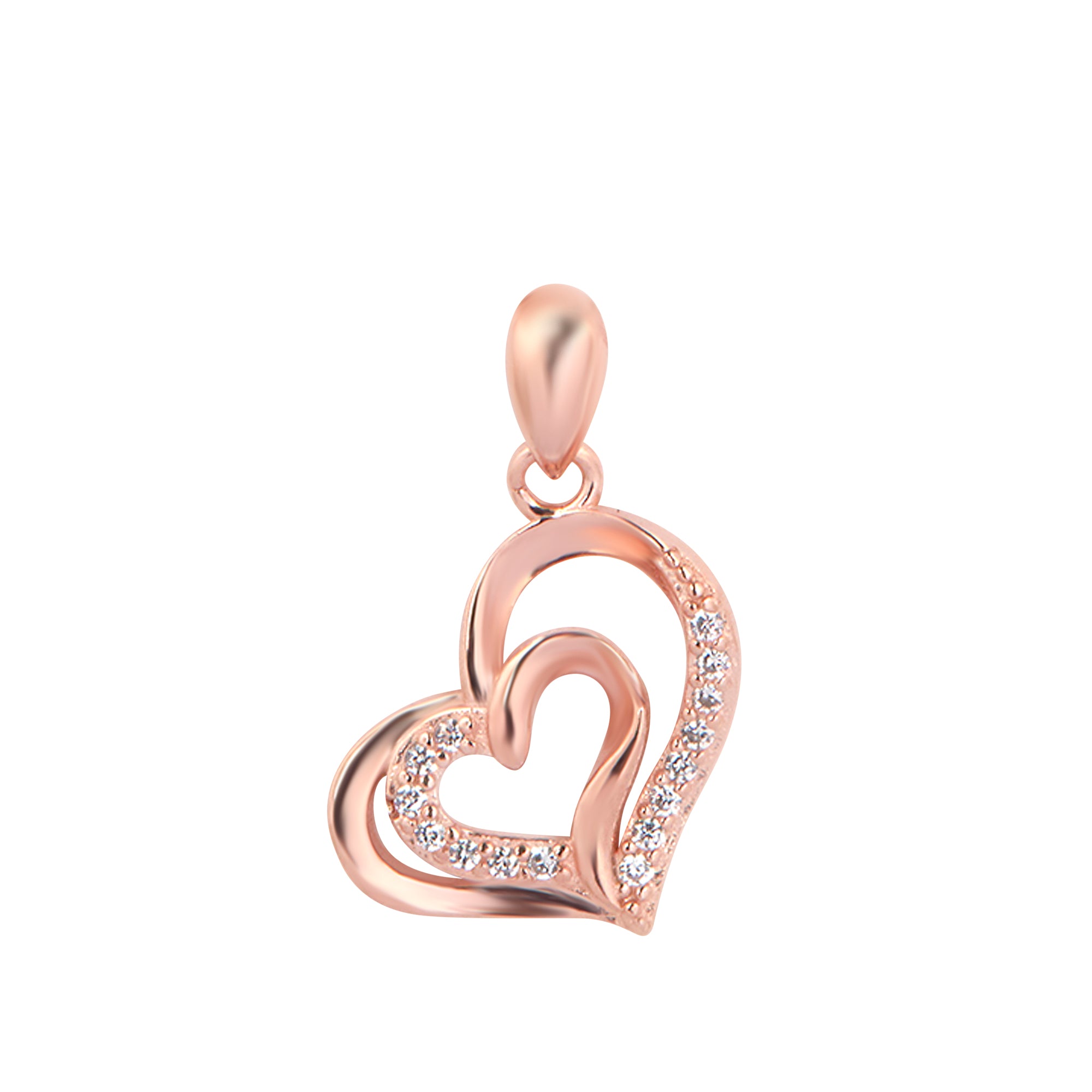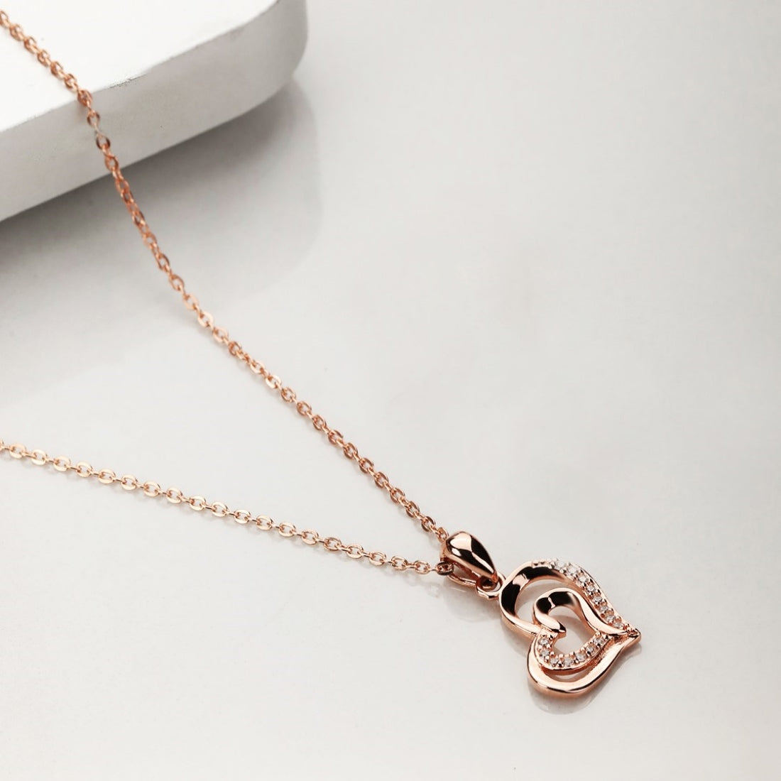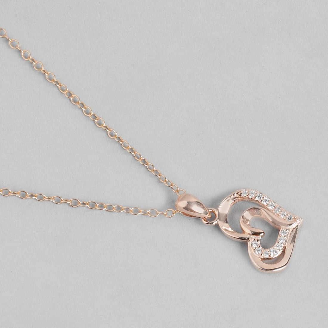 Heartfelt Radiance CZ Rose Gold-Plated 925 Sterling Silver Pendant with Chain