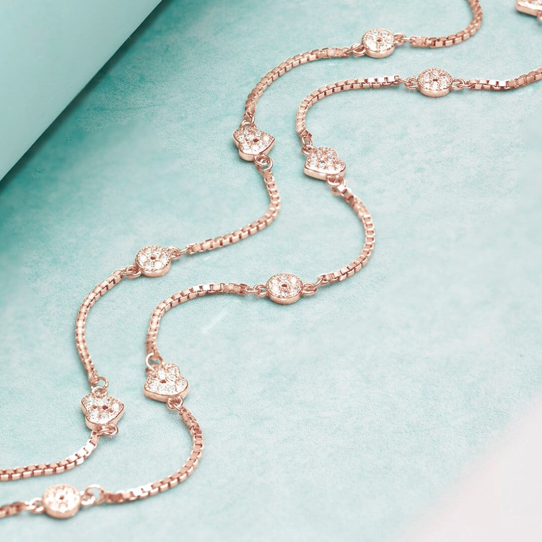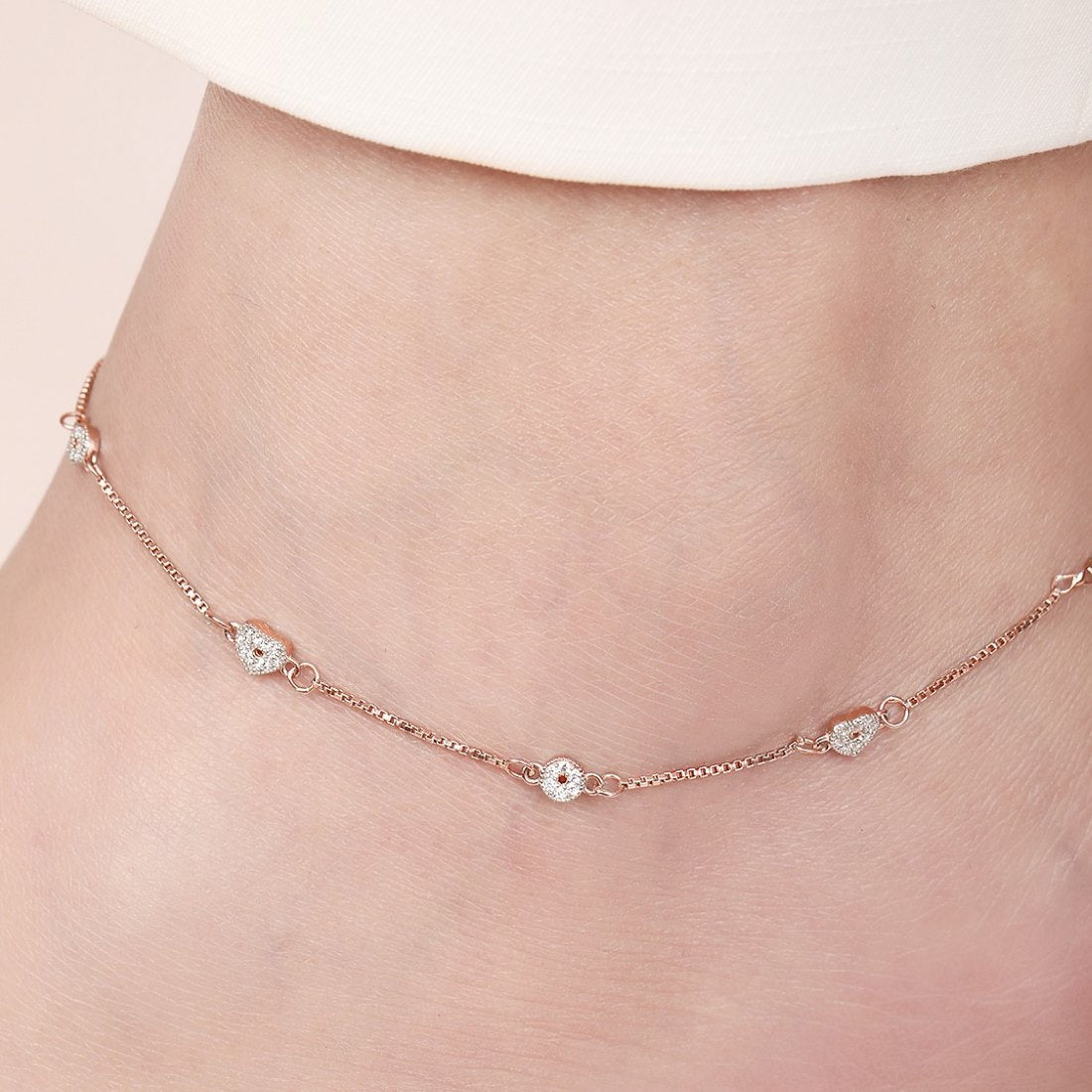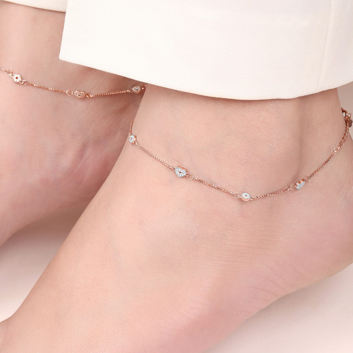 Heartfelt Radiance Rose Gold Plated CZ Sterling Silver Anklet