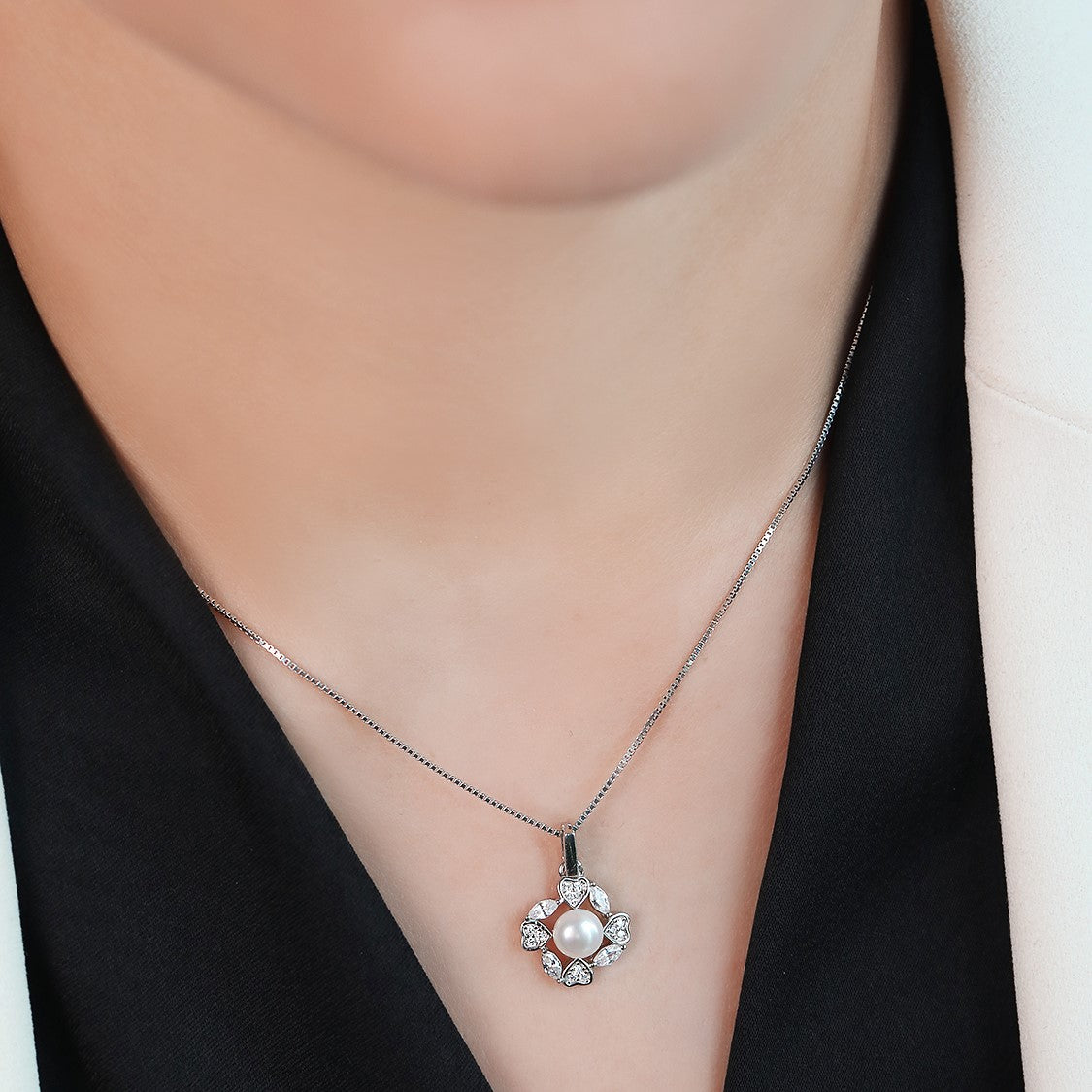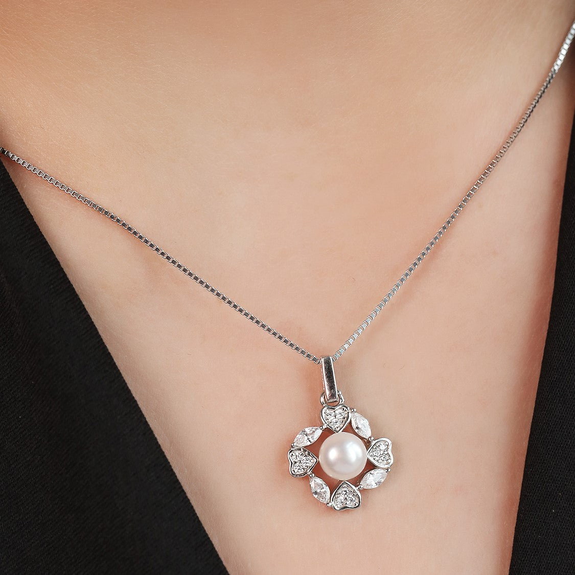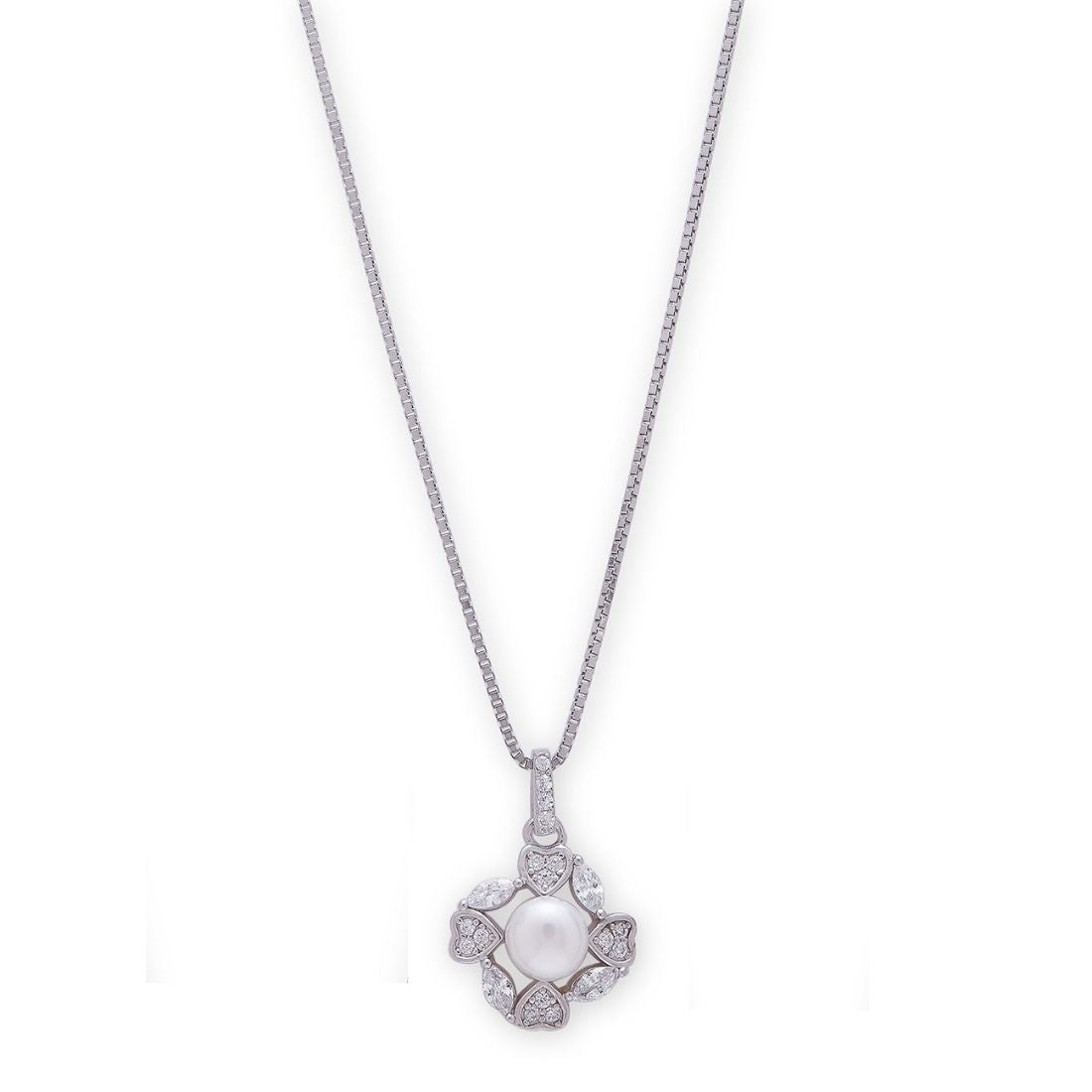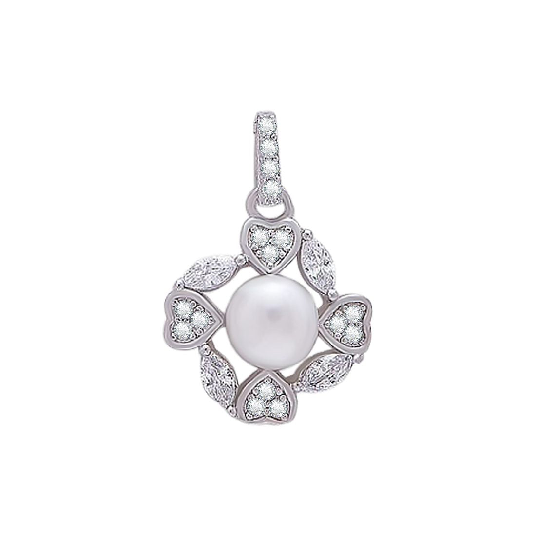 Product Description:- Experience the enchanting beauty of our 'Hearts in Bloom' 925 Sterling Silver Rhodium-Plated Flower of Hearts Pendant. The intricately designed pattern, combining delicate hearts in full bloom, is meticulously crafted and plated in radiant rhodium, creating a captivating and romantic piece. Each heart is adorned with sparkling cubic zirconia gemstones, casting a brilliant glow that captivates the eyes. The pendant is gracefully crowned with a lustrous freshwater pearl, adding a touch of elegance and refinement to the design. Elevate your style with 'Hearts in Bloom,' a perfect fusion of romance and sophistication.