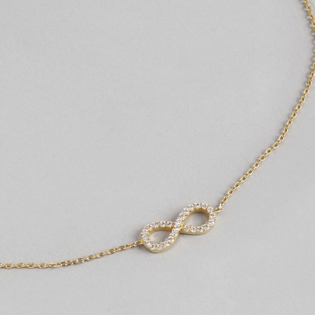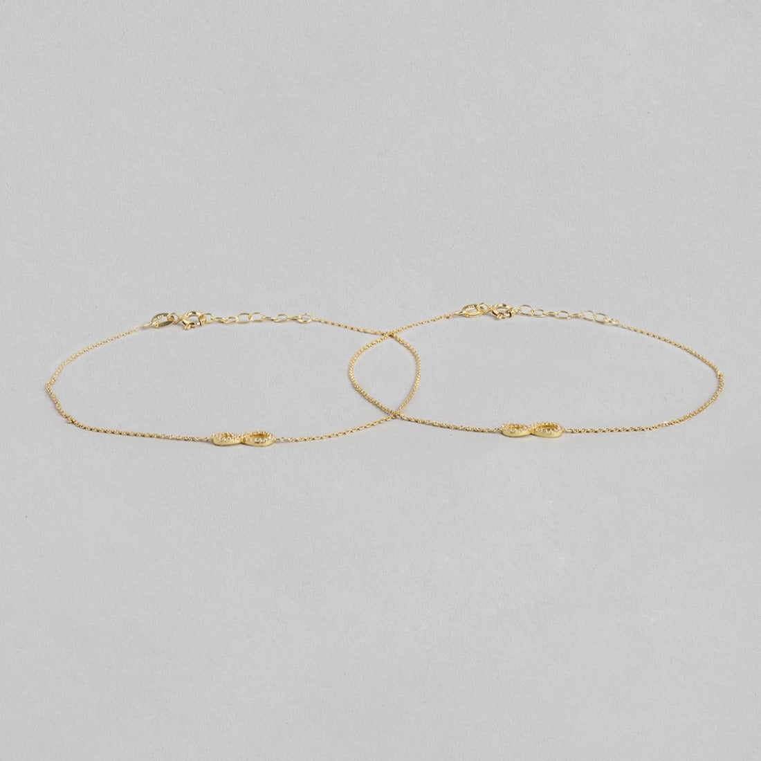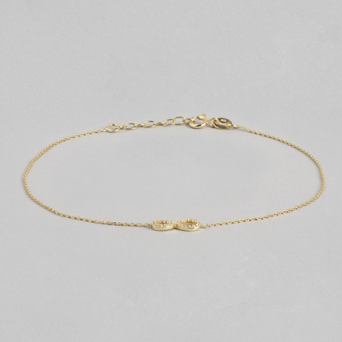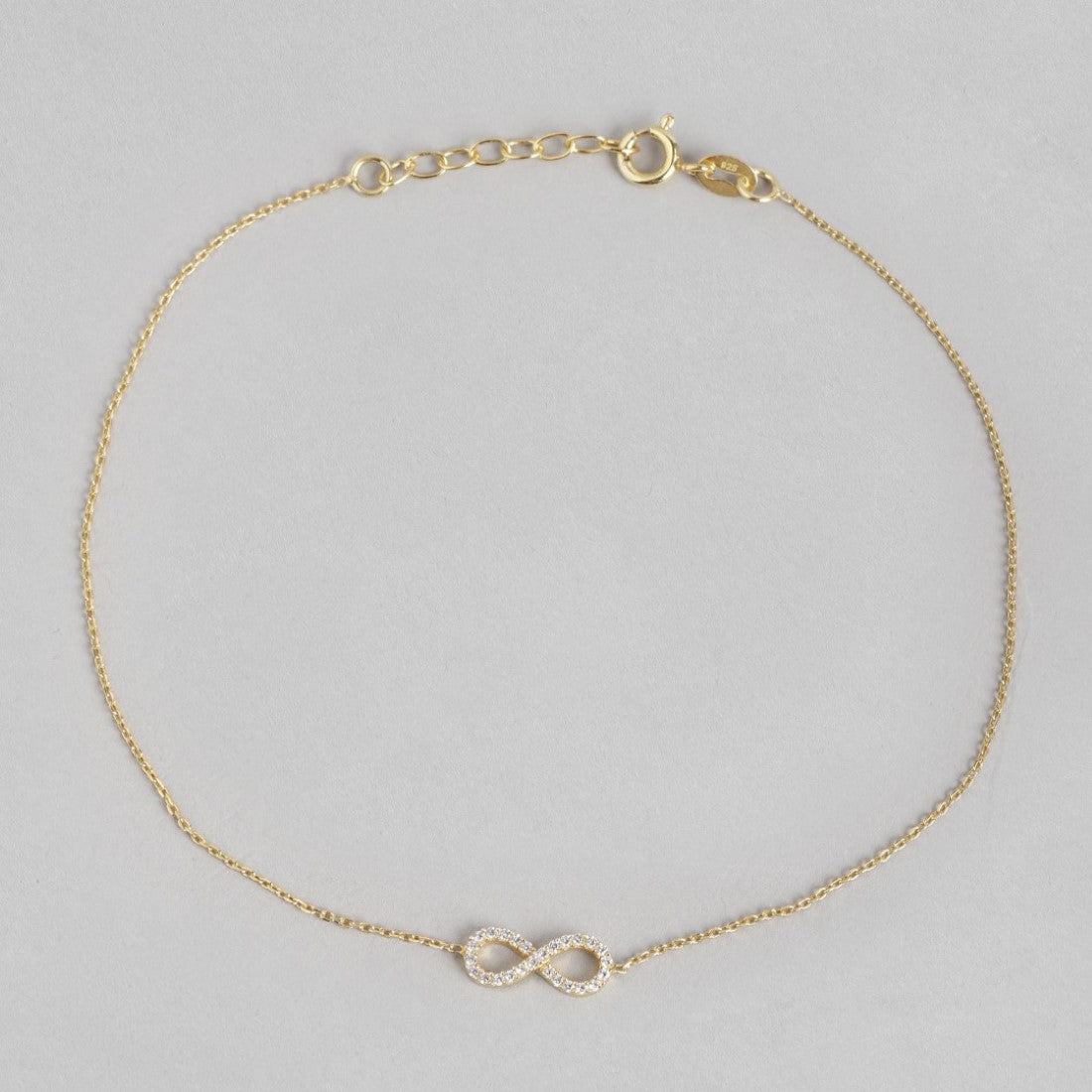 Product Description:- Elevate your style with the 'Infinite Glamour' Gold-Plated 925 Sterling Silver Anklet adorned with sparkling Cubic Zirconia. The mesmerizing infinity pattern symbolizes eternal elegance, while the radiant gold plating adds a touch of opulence. This anklet seamlessly blends glamour and sophistication, making it the perfect accessory to adorn your ankles. Step into the spotlight with confidence, as the shimmering Cubic Zirconia gems and the allure of gold-plated sterling silver create a captivating statement of enduring beauty.