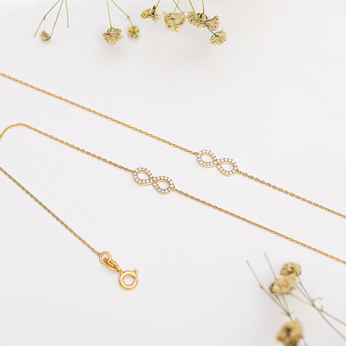 Infinite Glamour Gold-Plated 925 Sterling Silver Anklet with Cubic Zirconia