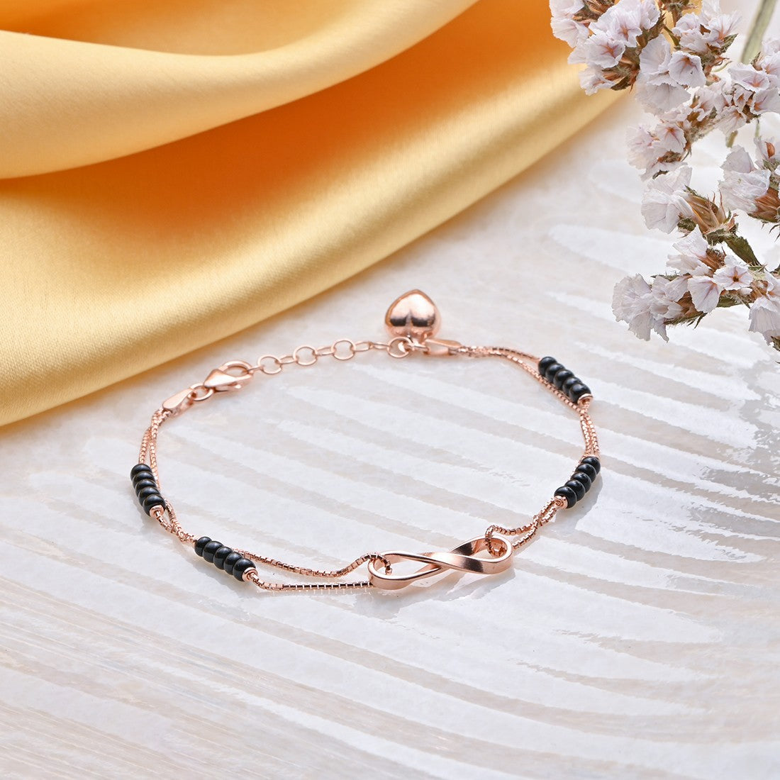 Infinity Rosegold Plated Beads 925 Sterling Silver Bracelet