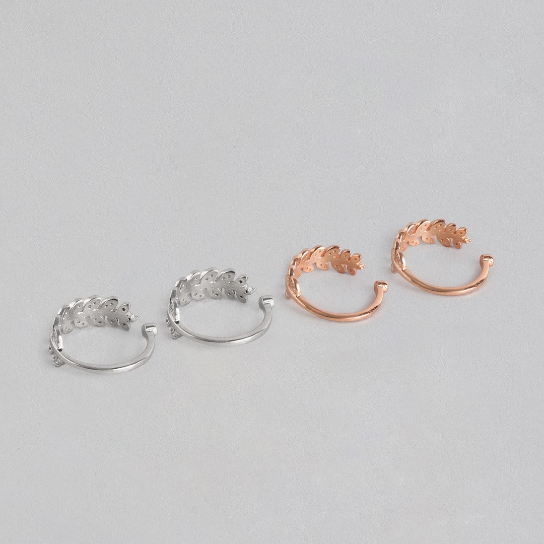 Leafy Silver Adjustable Rodium-Rose Gold 925 Silver Toe Ring Combo