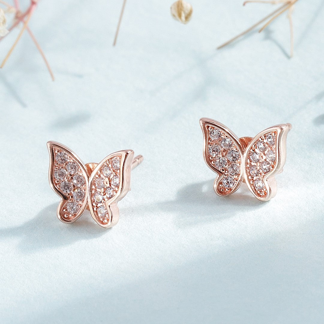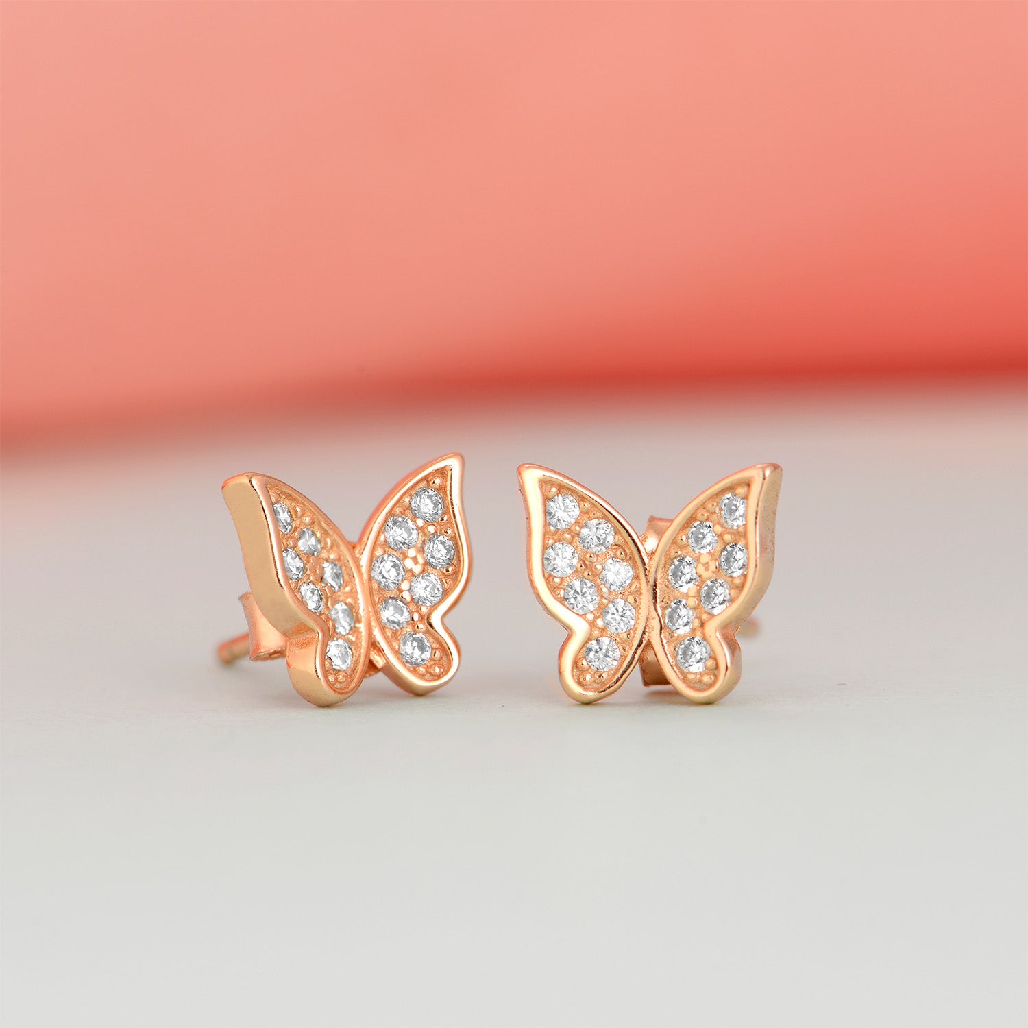 Butterfly Me Away Rose Gold 925 Silver Stud Earrings