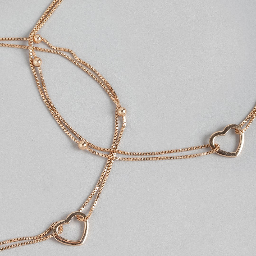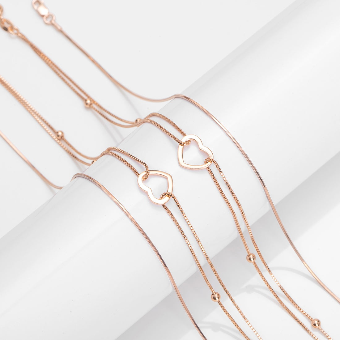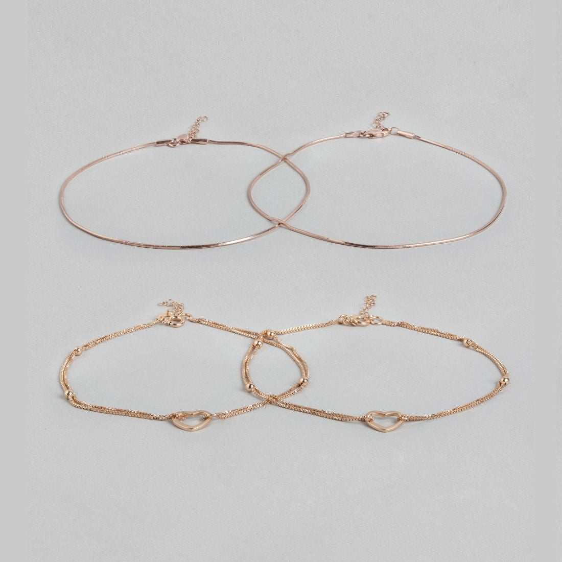 Linked Hearts Harmony Rose Gold-Plated 925 Sterling Silver Combo Anklet