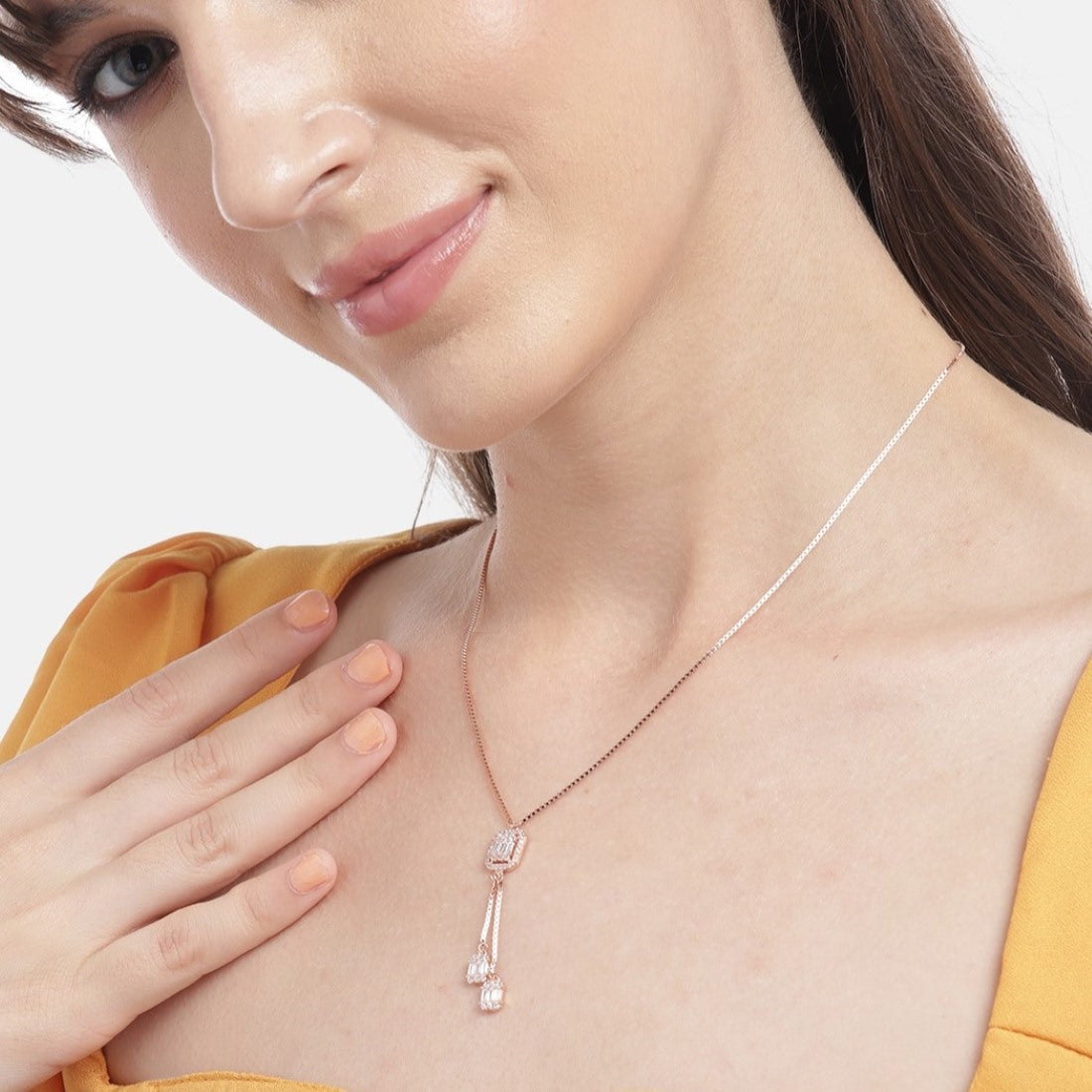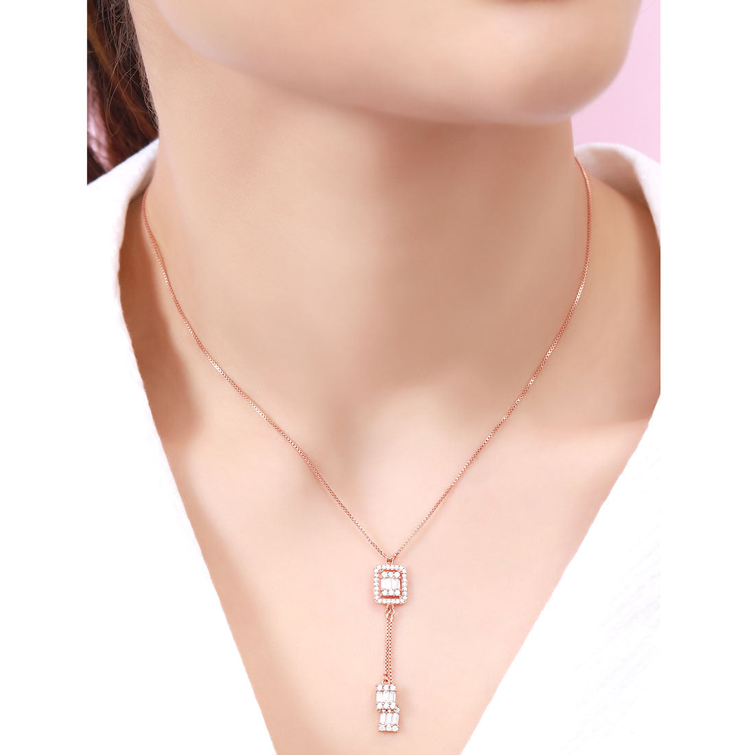 Product Description:- Radiate love and elegance with our 'Luminous Love' necklace. Crafted from exquisite 925 sterling silver and adorned with a radiant rose gold plating, this necklace captivates with its luminous beauty. The centerpiece features a dazzling cubic zirconia gem, symbolizing the brilliance of love. Its timeless design, combined with the warm hues of rose gold, makes this necklace a perfect expression of enduring affection. Whether for a special occasion or daily wear, 'Luminous Love' adds a touch of romance and sophistication to your every moment.