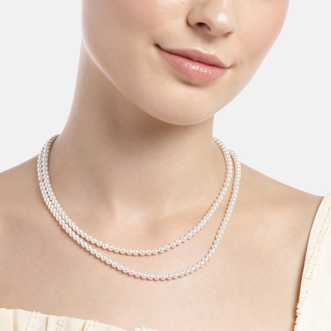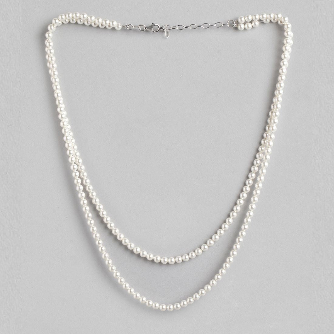 Product Description:- Indulge in the timeless beauty of this dual-layered pearl necklace. Crafted from exquisite rhodium-plated 925 sterling silver, it showcases the purity and elegance of pearls. The lustrous pearls gracefully adorn your neckline, offering a touch of sophistication and refinement to any ensemble. Elevate your style with this radiant piece, perfect for both formal occasions and everyday elegance.