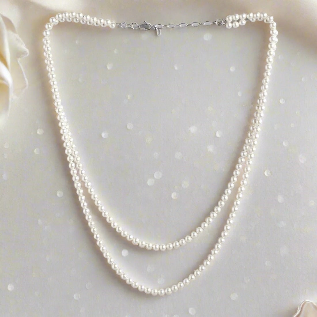 Lustrous Dual Layers Rhodium-Plated 925 Sterling Silver Pearl Necklace