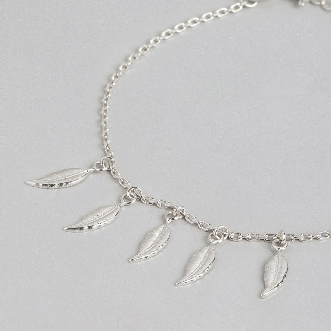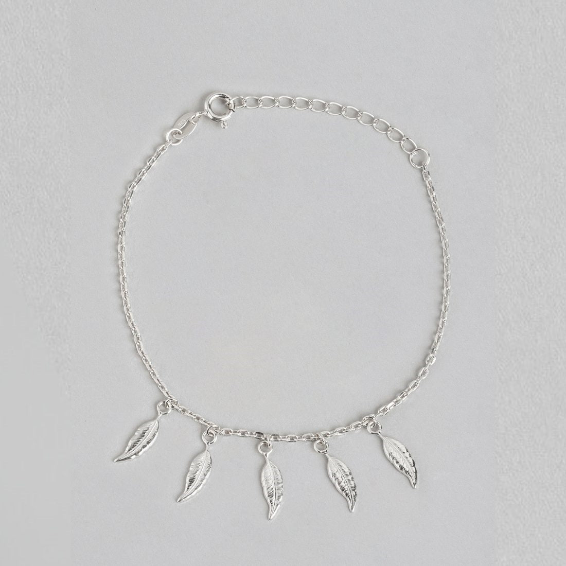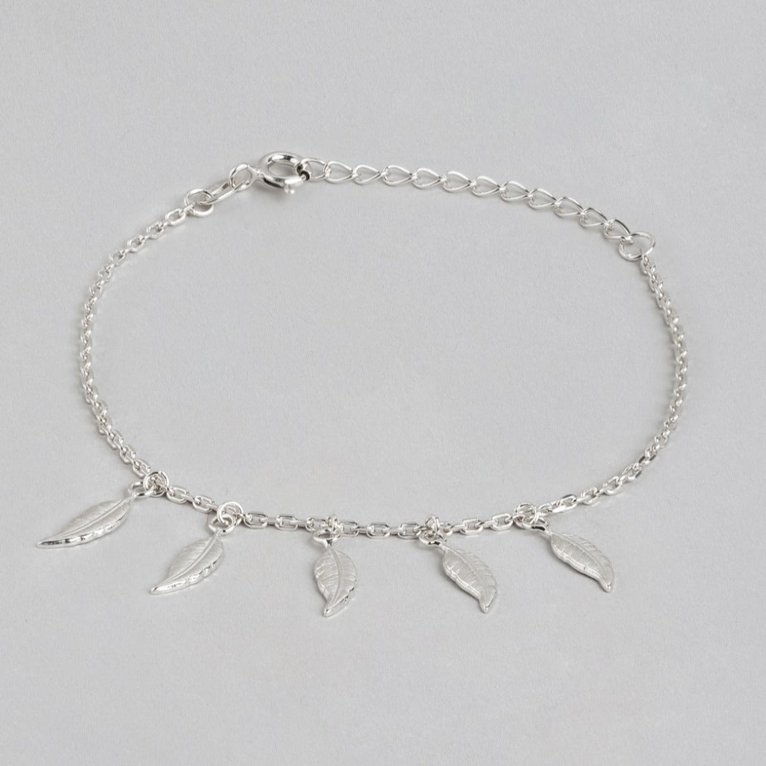 Product Description:- Embrace the enchanting beauty of nature with our 'Lustrous Foliage' Rhodium-Plated 925 Sterling Silver Bracelet, adorned with an intricately crafted leaf pattern. Each link radiates the luster of sterling silver, enhanced by the brilliant touch of rhodium plating. This bracelet is more than an accessory; it's a wearable piece of art that captures the essence of gilded foliage. Let your wrist gleam with the luminous allure of this meticulously fashioned bracelet, a radiant tribute to the elegance found in nature.