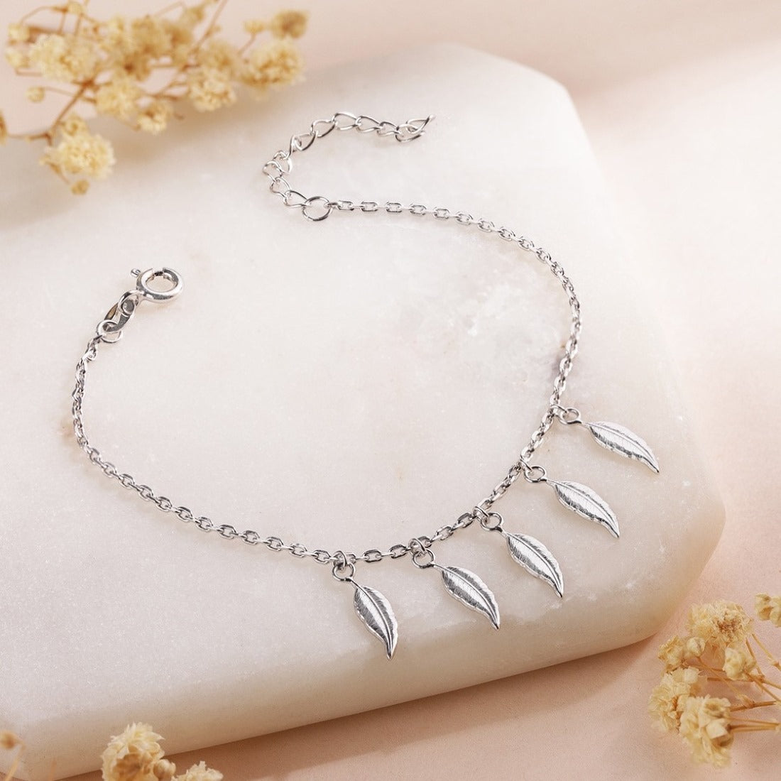 Lustrous Foliage Rhodium-Plated 925 Sterling Silver Bracelet with Leaf Pattern