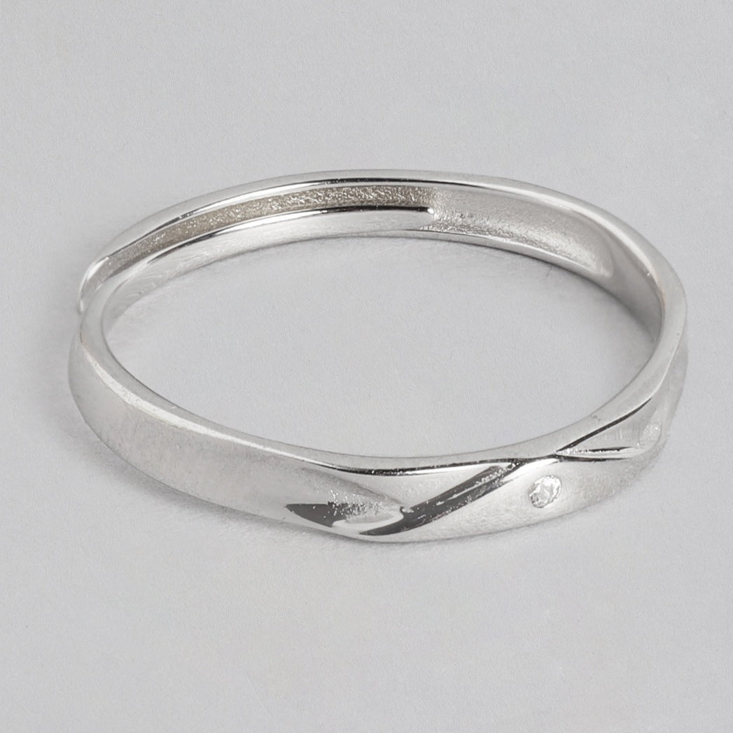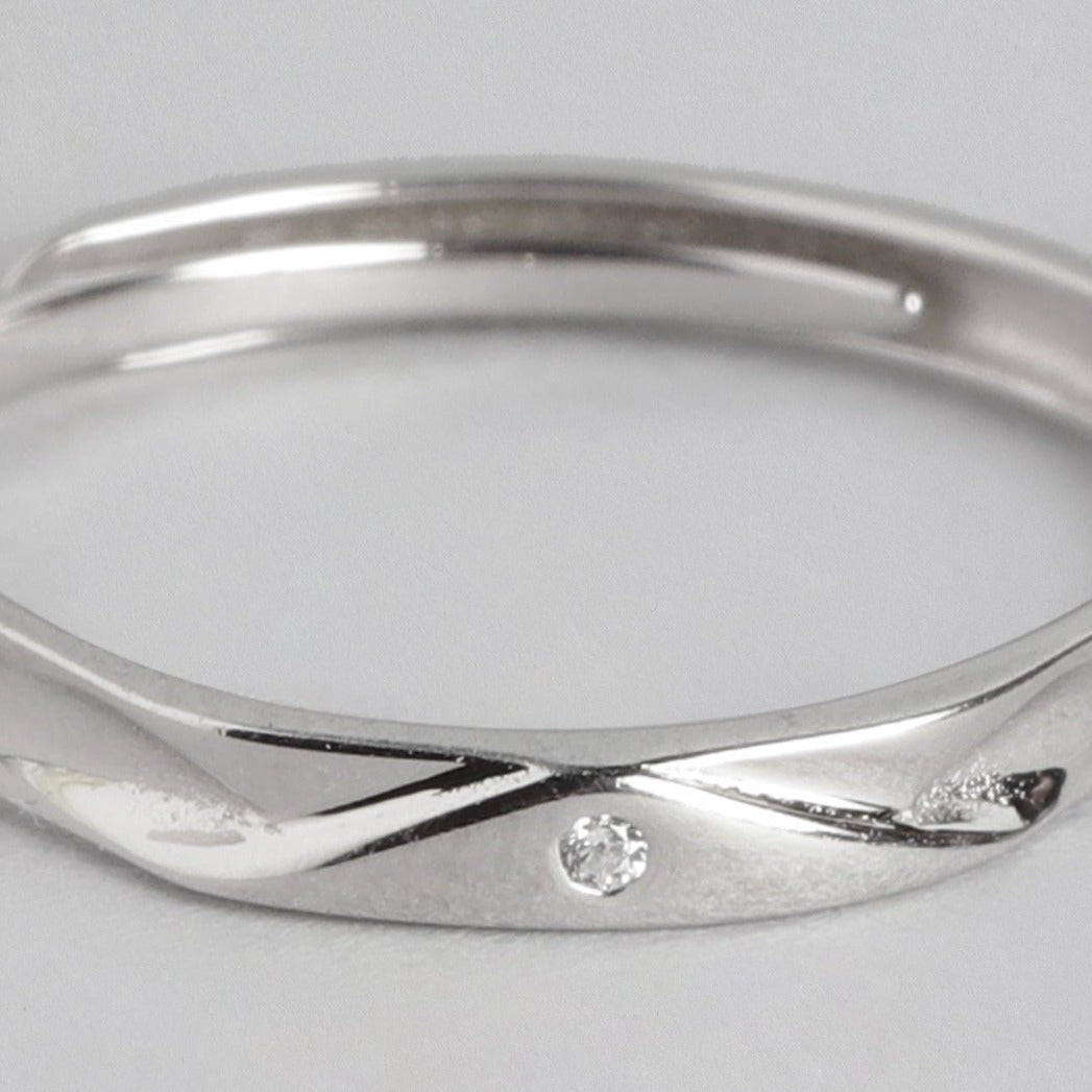 Mini CZ Studded Rhodium Plated 925 Sterling Silver Ring (Adjustable)