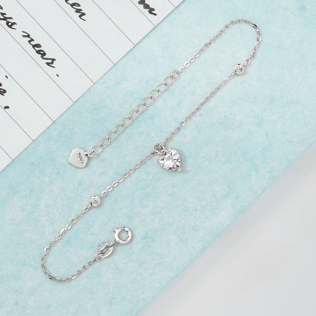 Minimal Heart Cubic Zirconia 925 Silver Bracelet