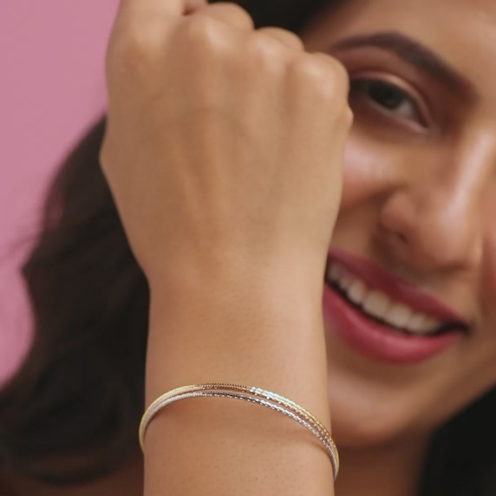 Product Description:- Experience 'Eternal Harmony,' where three radiant tones unite in a captivating chain pattern. Crafted from 925 sterling silver, this bracelet symbolizes timeless unity. With its interplay of silver, gold, and rose gold tones, it's a versatile piece that effortlessly enhances your style. Elevate your wrist with a touch of harmonious elegance.