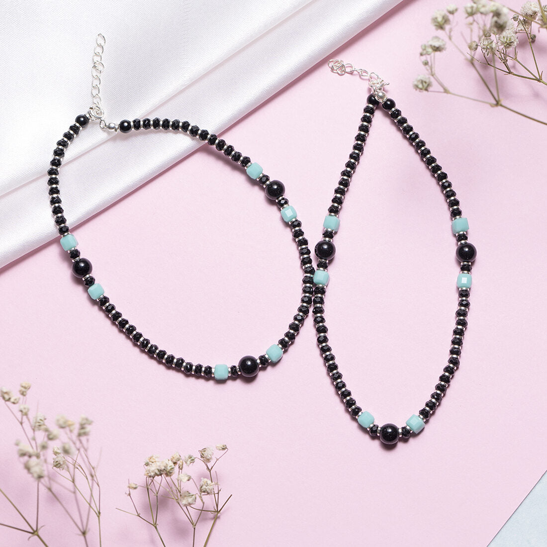 Product Description:- Discover the captivating allure of our 925 sterling silver anklet. With a harmonious fusion of vibrant green and black beads, this anklet exudes an air of mystique and sophistication. The rhodium plating enhances the silver's radiant shine, making it an exquisite accessory for any occasion. Embrace the enchantment of this unique anklet and add a touch of mystic elegance to your style.