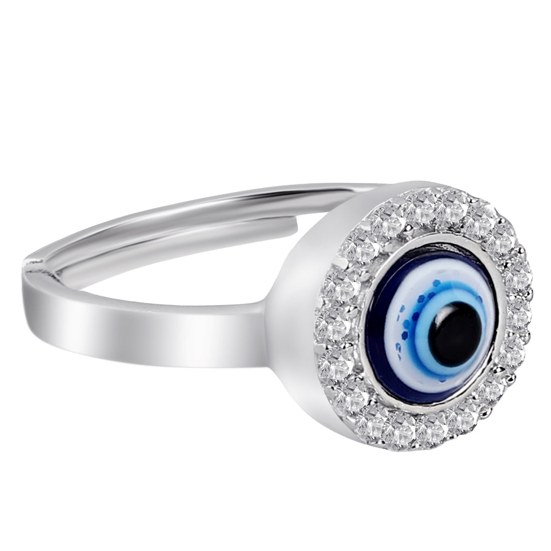 Mystic Ward Evil Eye CZ Rhodium Plated 925 Sterling Silver Ring (Adjustable)