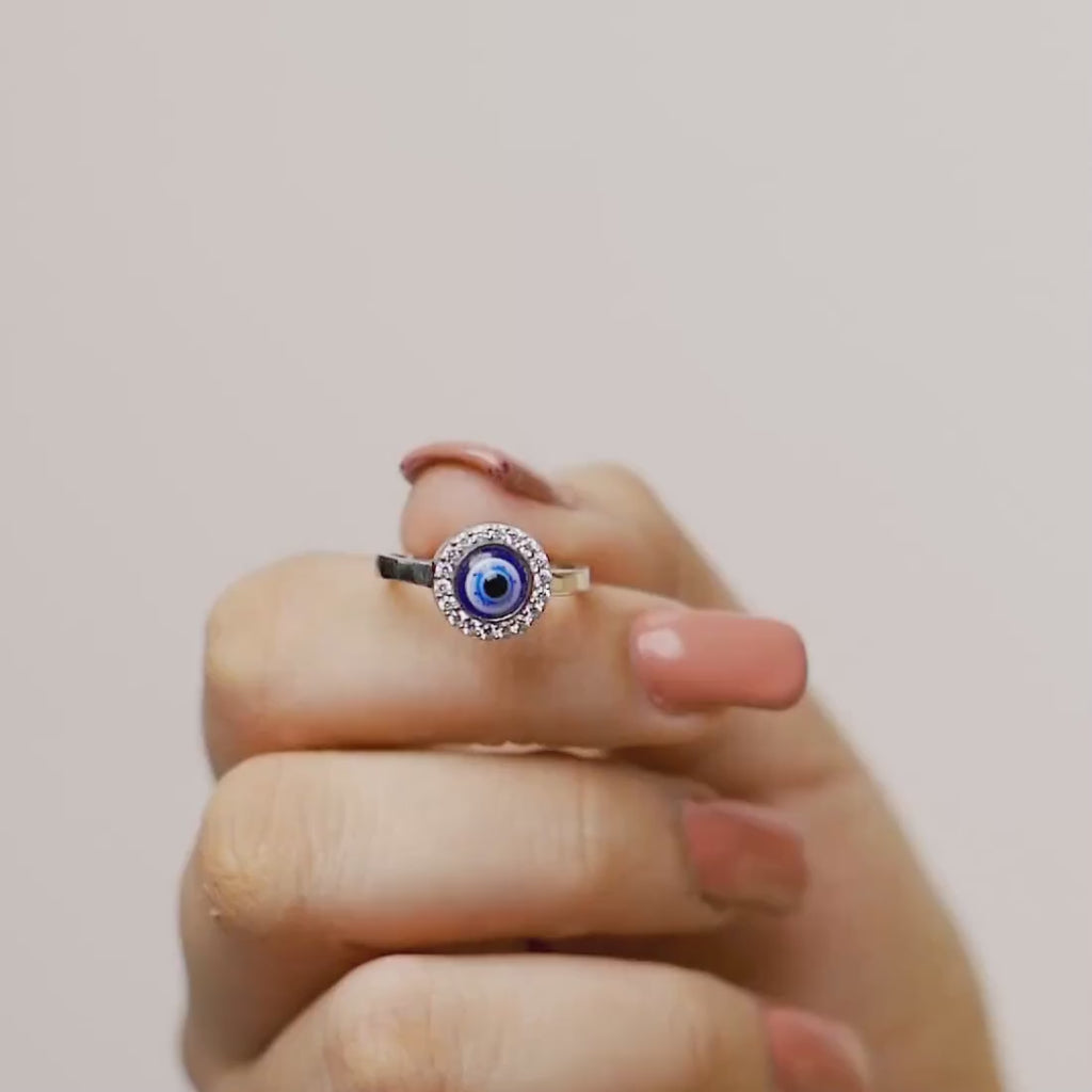 Product Description:- Unlock the mysteries of style with our 'Mystic Ward' ring. Handcrafted from exceptional 925 sterling silver and adorned with a gleaming rhodium plating, this ring features the enigmatic Evil Eye pattern, embellished with sparkling cubic zirconia. The Evil Eye is a symbol of protection and warding off negative energies. 'Mystic Ward' not only exudes timeless elegance but also serves as a guardian of your unique charm. Embrace its mystique and add a touch of spiritual grace to your everyday ensemble.