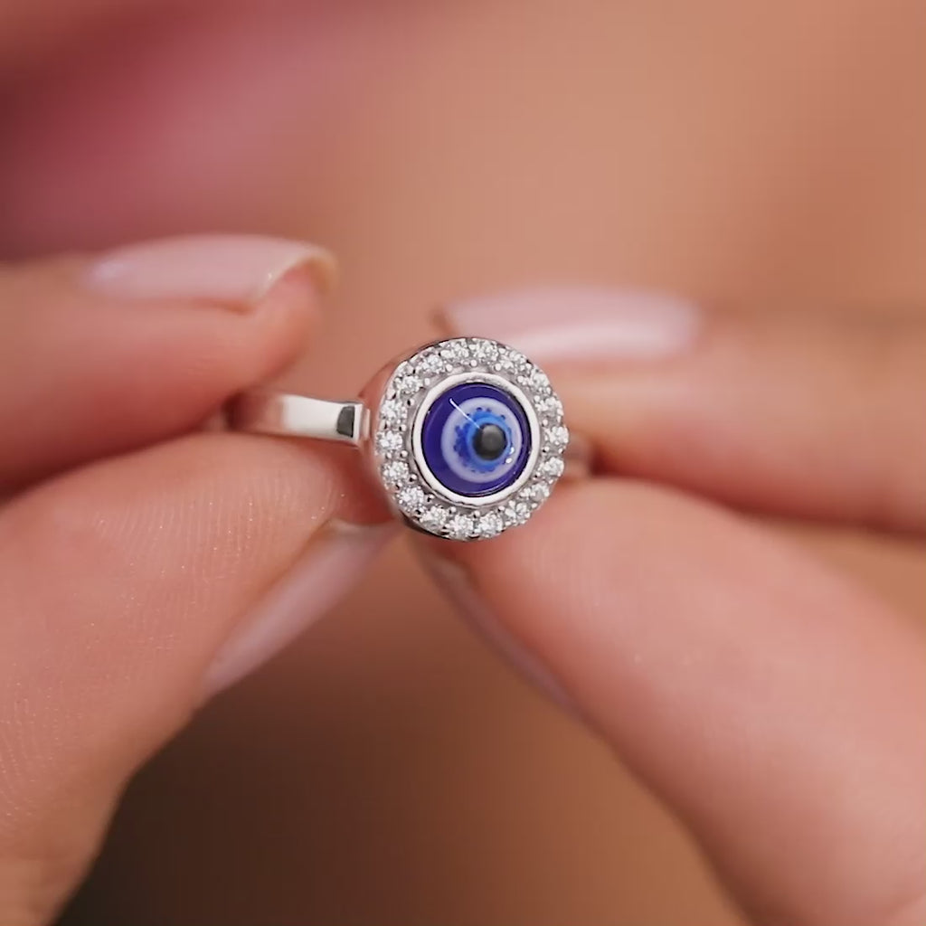 Mystic Ward Evil Eye CZ Rhodium Plated 925 Sterling Silver Ring (Adjustable)