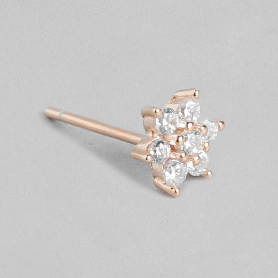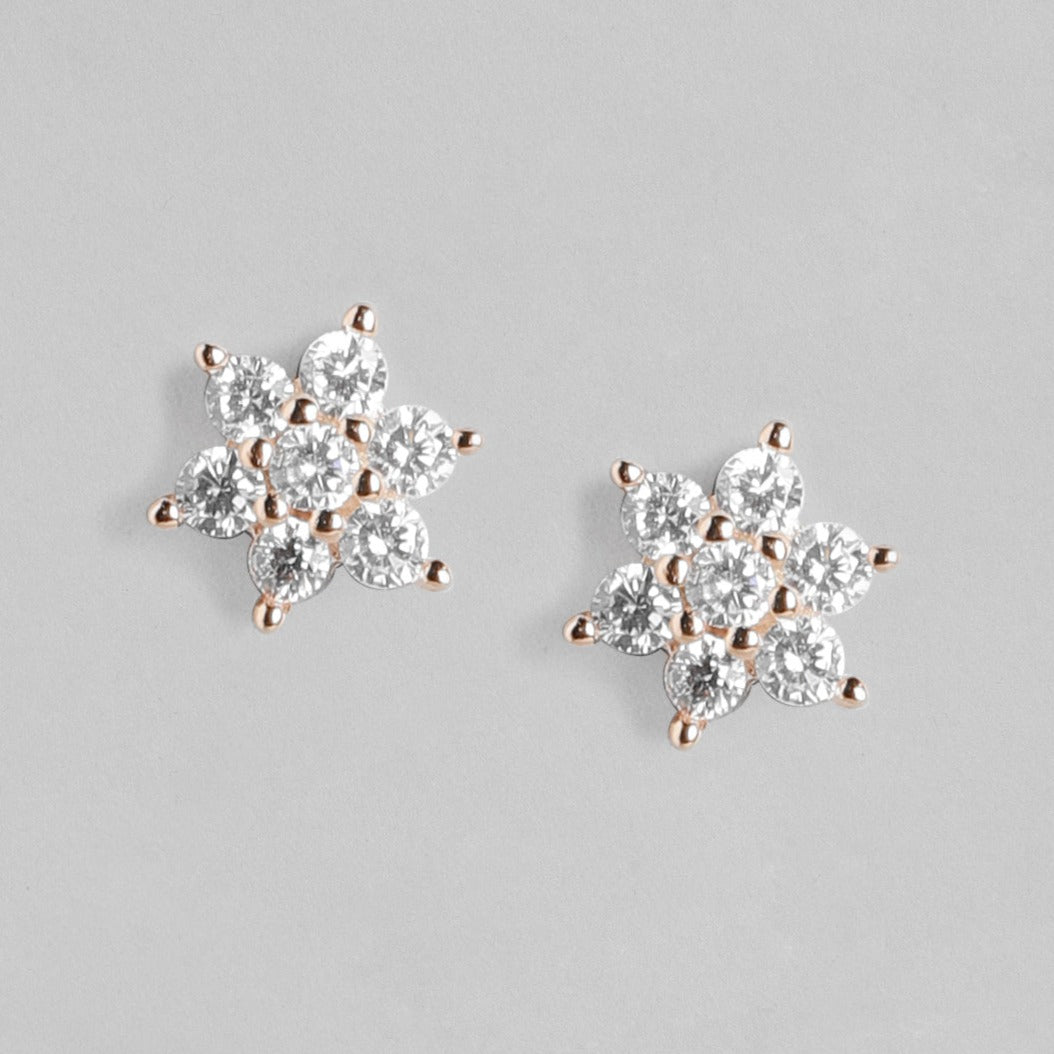 Enchanting Nakshatra Floral 925 Silver Stud Earrings In Rose Gold
